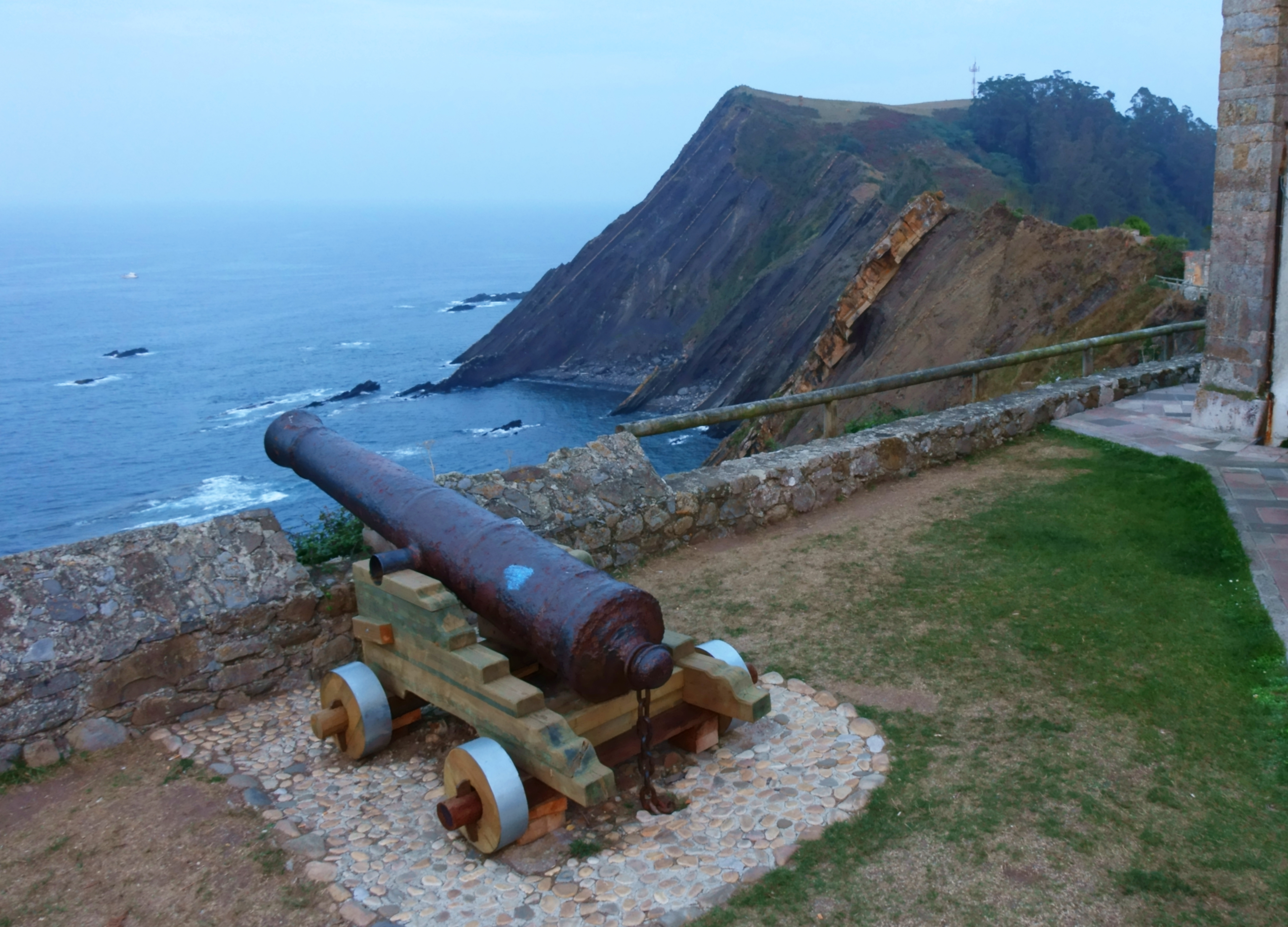 Ribadesella – Camino que asciende al mirador de Ntra. Sra. de la GuíaEn lo alto se encuentra la Ermita de Guía, una pequeña capilla que es sede de la Virgen del mismo nombre, la patrona del gremio de los marineros desde tiempos antiguosEn el entorno de la ermita descubrimos cañones auténticos apuntando hacia el horizonte. Se trata de las armas que los antiguos riosellanos empleron para protegerse de cualquier amenaza que llegará desde el mar, llámese piratas o conquistadores extranjeros