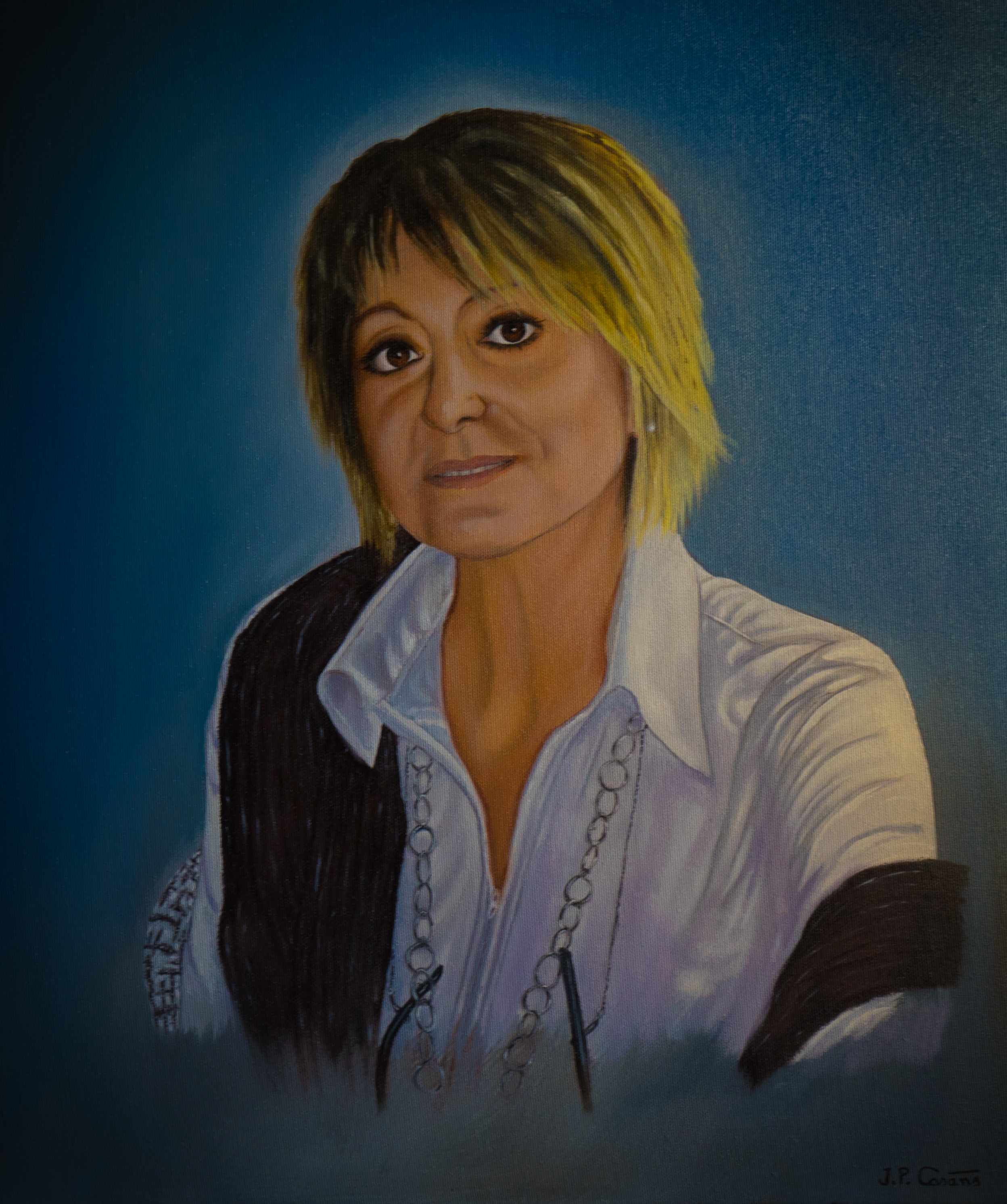 Es mi primer retrato familiar al óleo y la verdad es, diría yo, el que más me ha agobiado a la hora de querer plasmar algo tan cercano, como la mirada de tu propia mujer, en un lienzo.