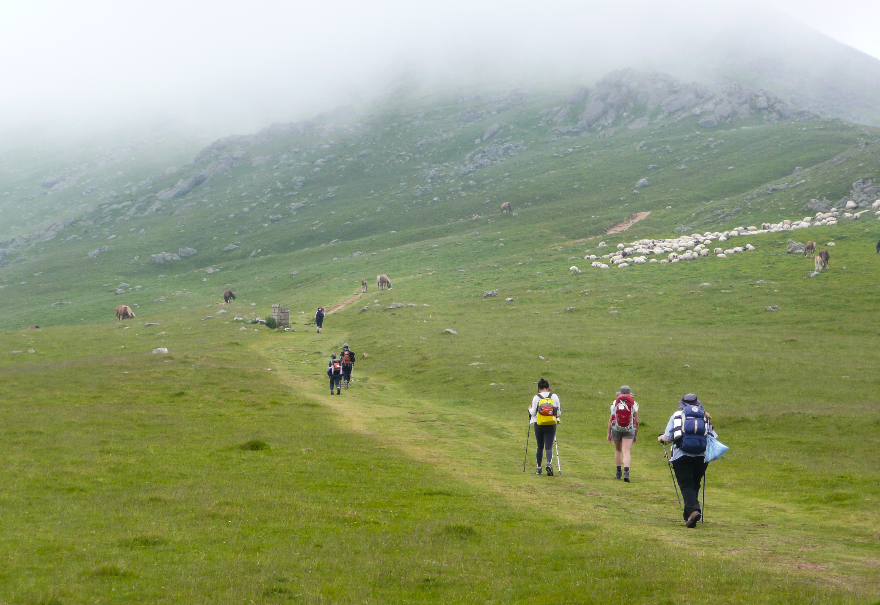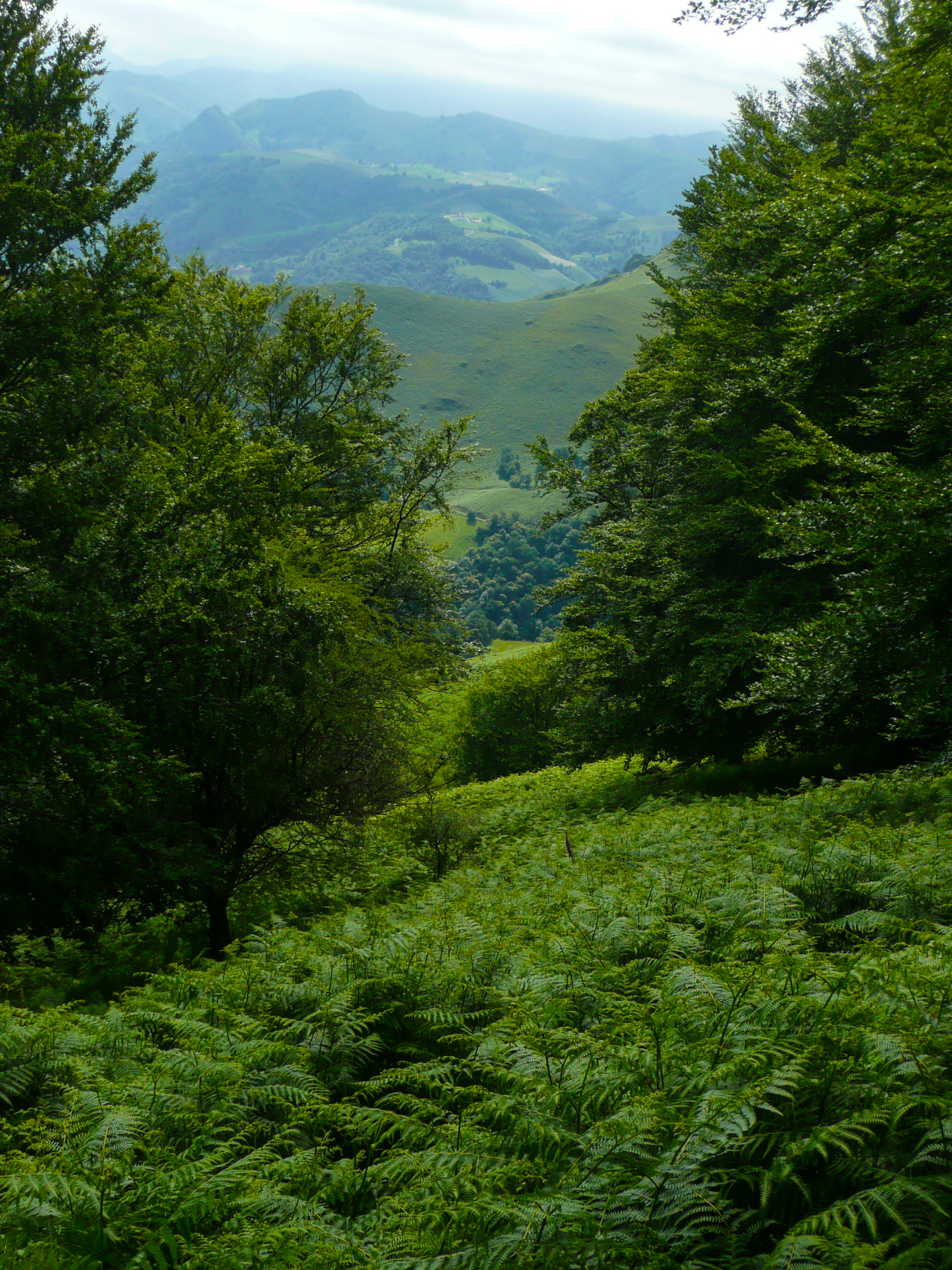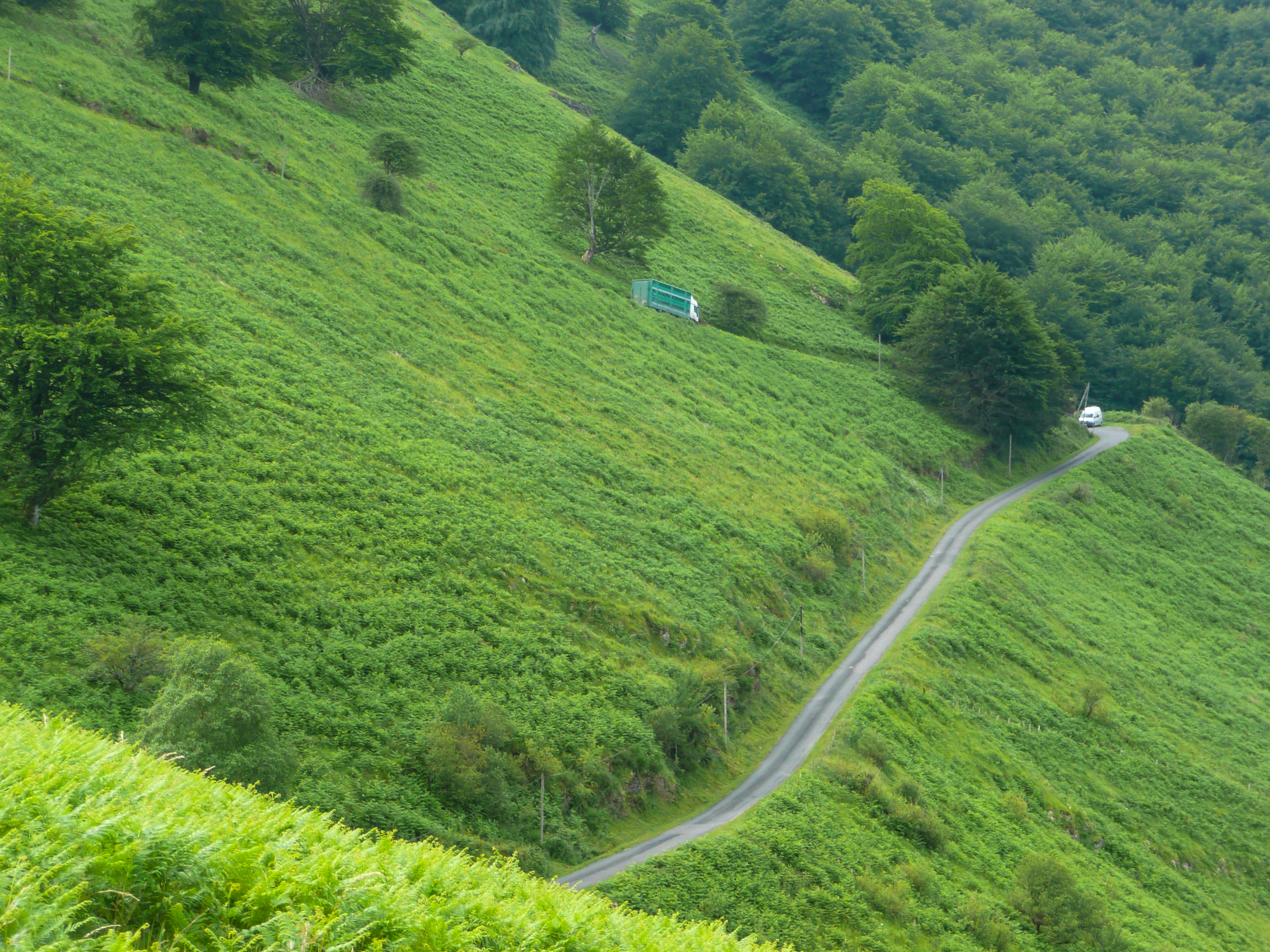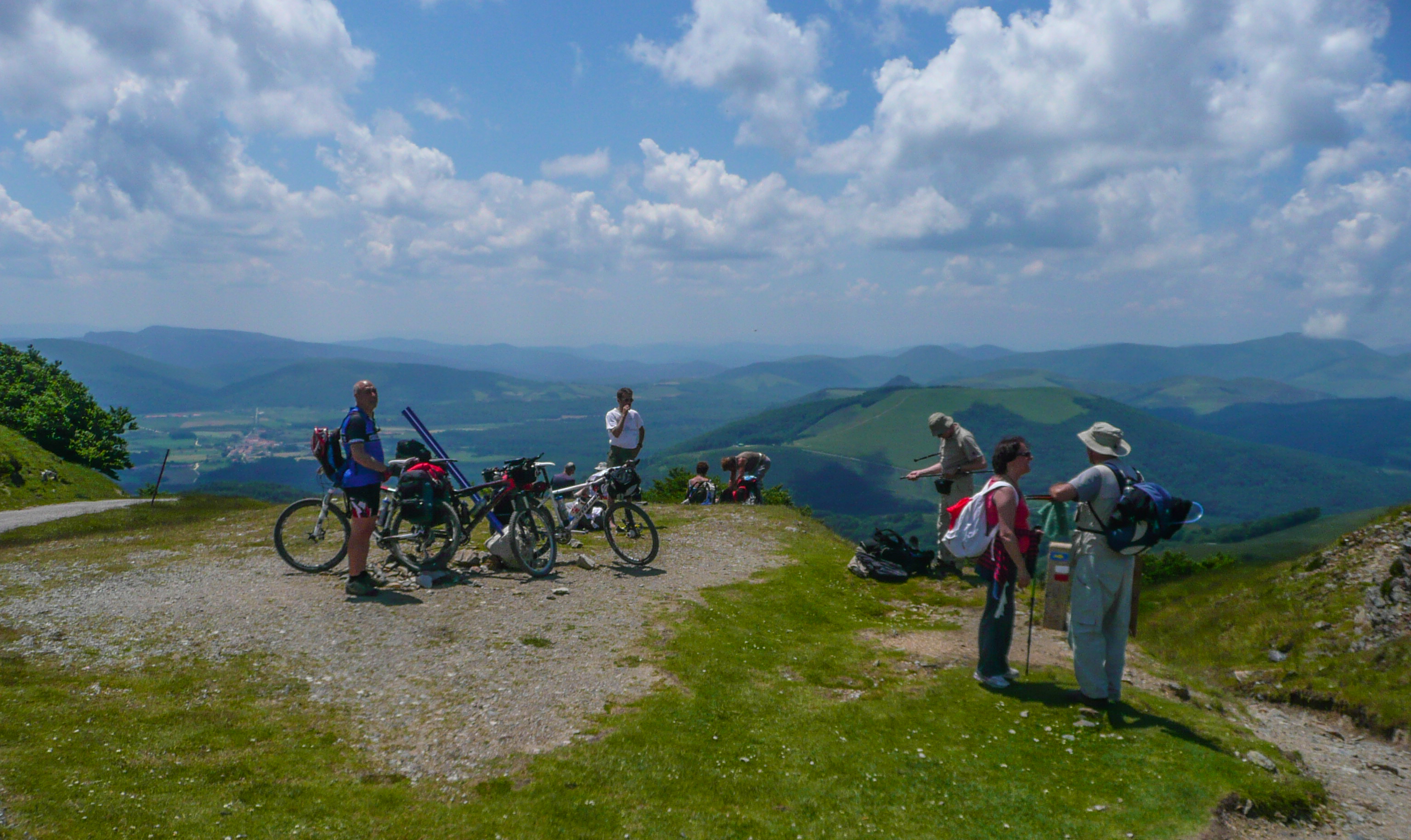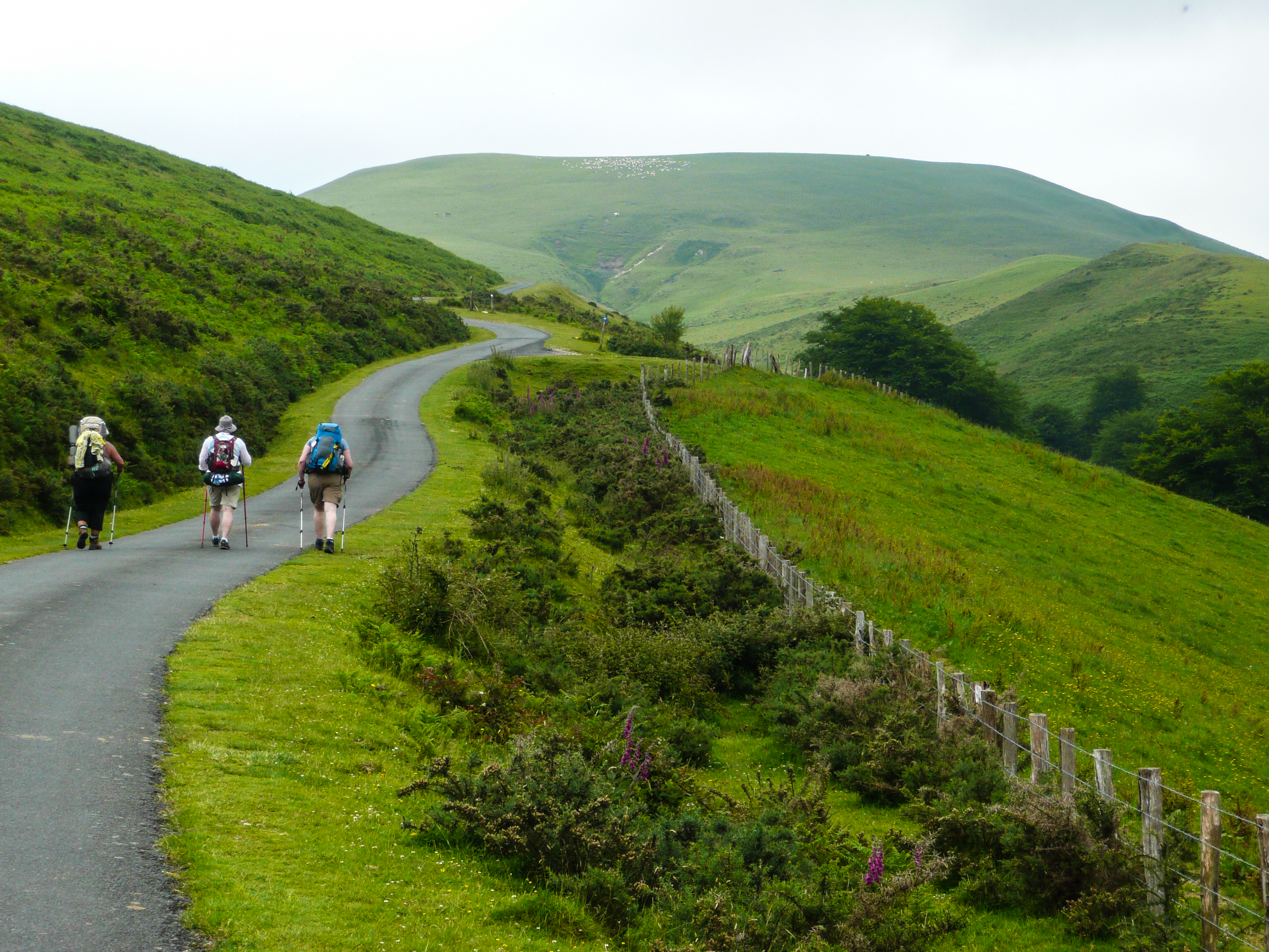 Empezamos en el puente medieval sobre el río Nive. Así accedemos a la rue d’Espagne, barrio de comerciantes y artesanos que apenas ha variado su fisonomía a lo largo de los siglos. Atravesamos la calle de una punta a otra para traspasar los muros derruidos de la antigua muralla y llegar hasta un poste de madera. Clavada, junto a una concha y la marca roja y blanca del GR 65, hay una señal que indica Chemin de Saint Jacques de Compostelle.. Un terrible repecho nos recibe a continuación y conviene afrontarlo muy despacio, facilitando así el calentamiento progresivo en una etapa que va a exigirnos mucho esfuerzo y que hay que tomarse con mucha calma. Es más, para evitar un sufrimiento excesivo y hasta un probable susto se recomienda venir bien entrenado.
