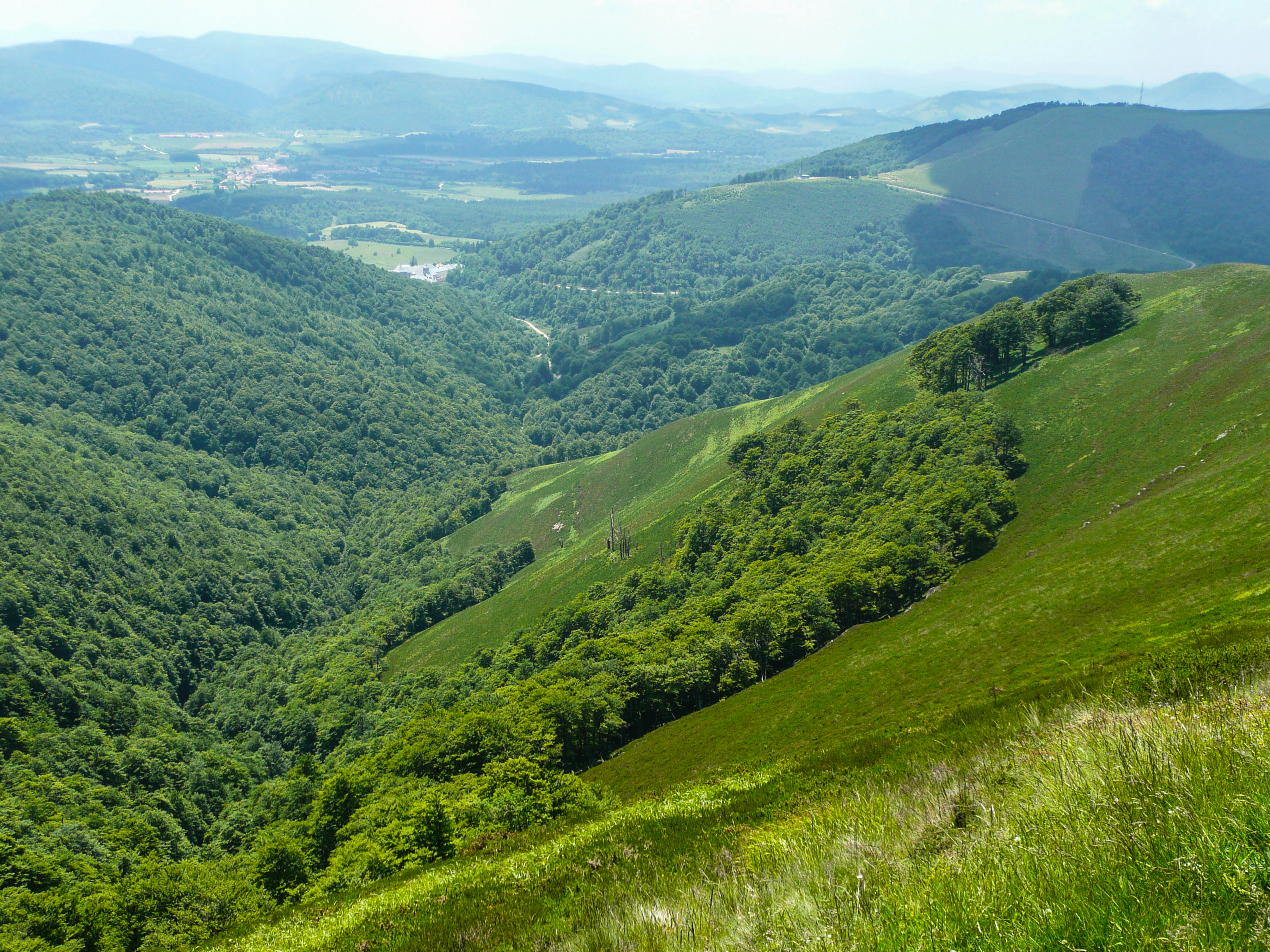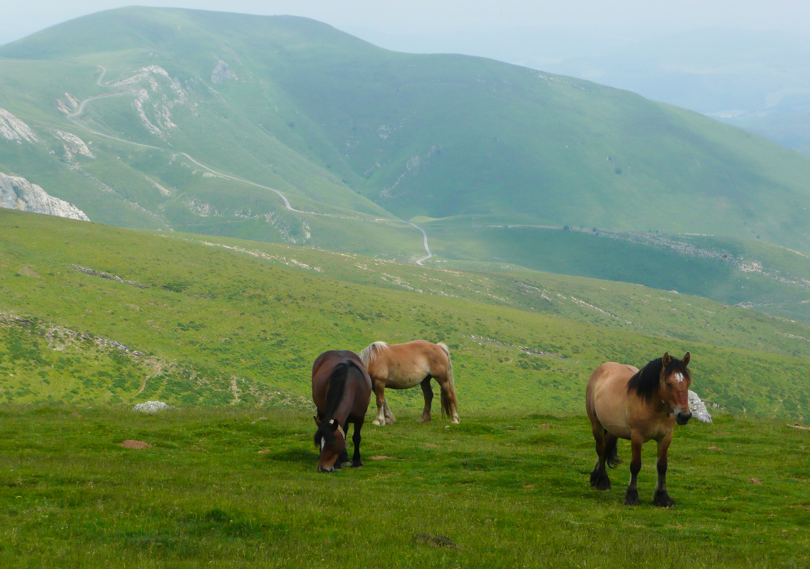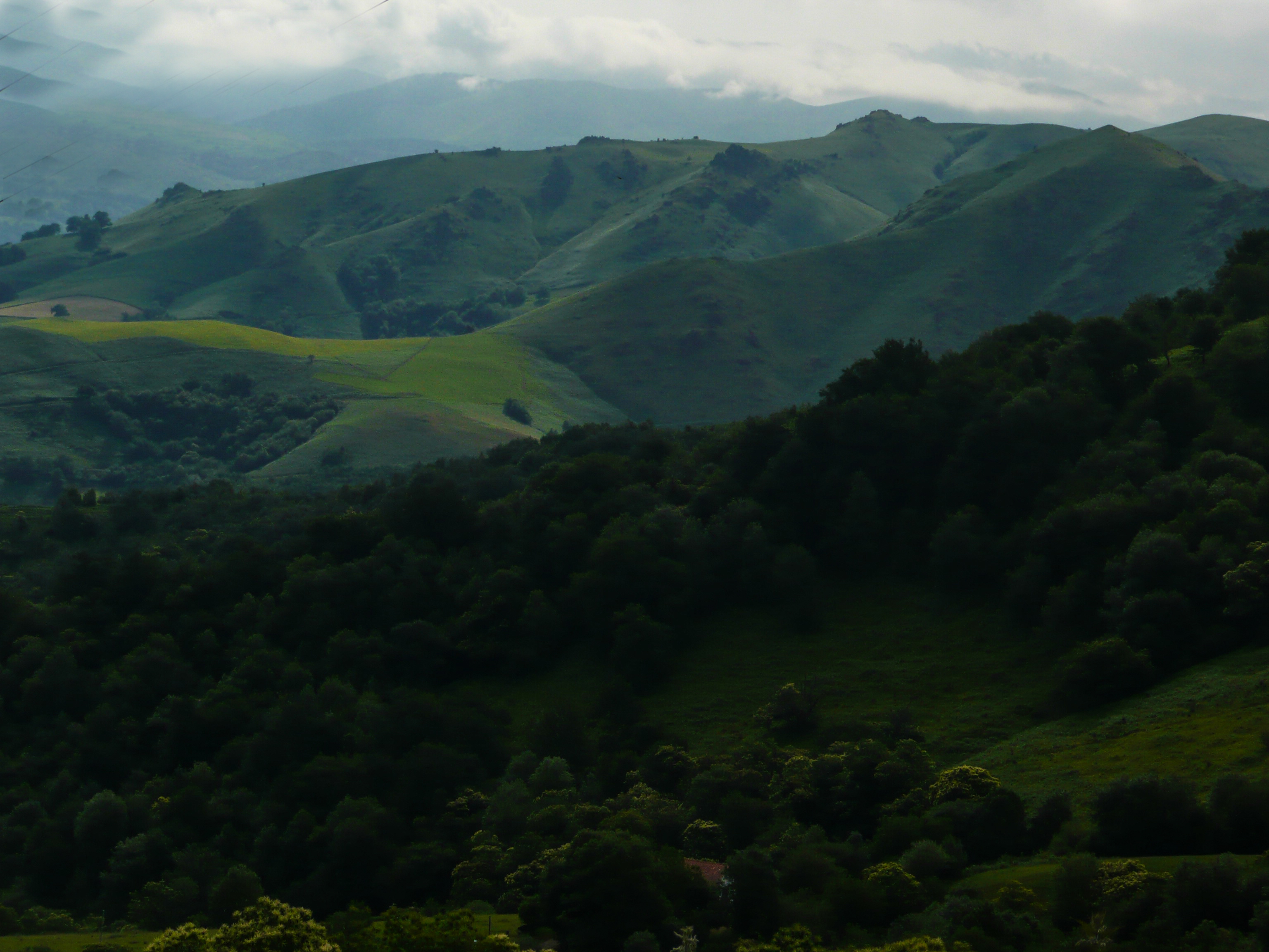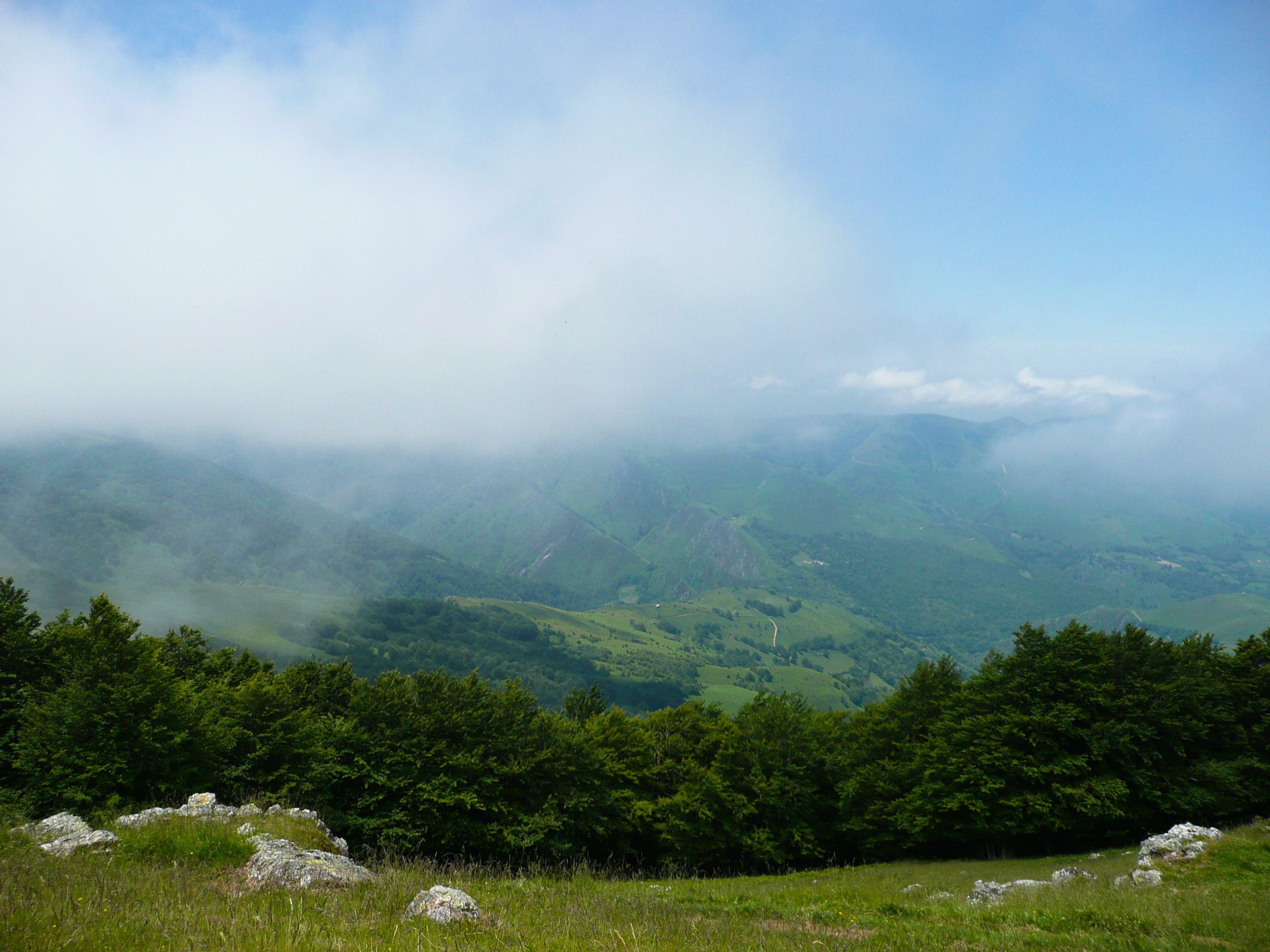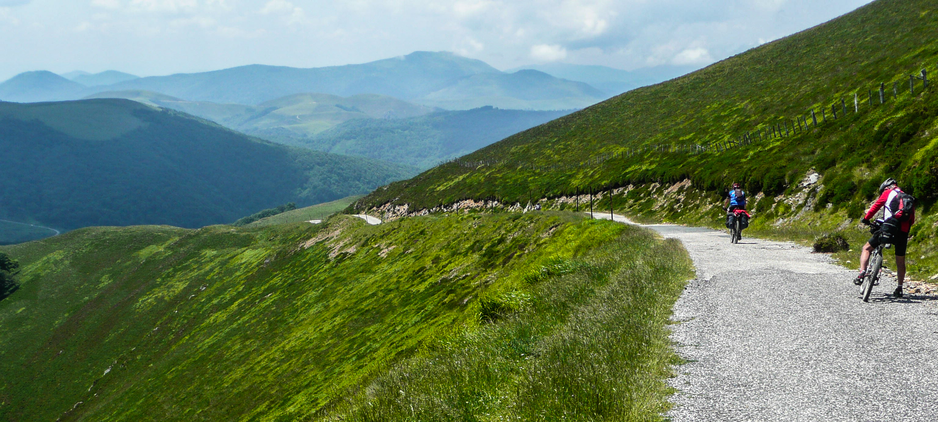 Empezamos en el puente medieval sobre el río Nive. Así accedemos a la rue d’Espagne, barrio de comerciantes y artesanos que apenas ha variado su fisonomía a lo largo de los siglos. Atravesamos la calle de una punta a otra para traspasar los muros derruidos de la antigua muralla y llegar hasta un poste de madera. Clavada, junto a una concha y la marca roja y blanca del GR 65, hay una señal que indica Chemin de Saint Jacques de Compostelle.. Un terrible repecho nos recibe a continuación y conviene afrontarlo muy despacio, facilitando así el calentamiento progresivo en una etapa que va a exigirnos mucho esfuerzo y que hay que tomarse con mucha calma. Es más, para evitar un sufrimiento excesivo y hasta un probable susto se recomienda venir bien entrenado.
