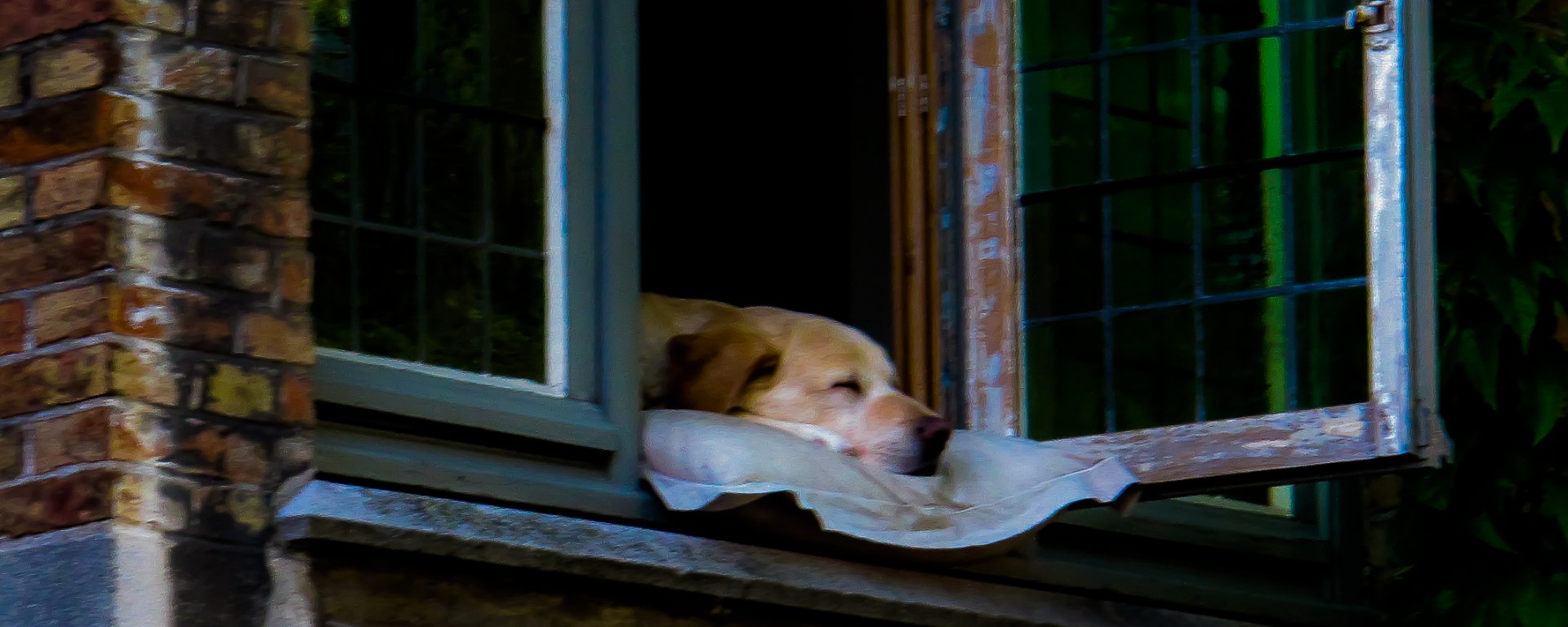Por lo visto, esta estampa es uno de los atractivos incluidos en los típicos paseos turísticos en barco, por los canales de Brujas. En una de las ventanas de la parte trasera de una vivienda, por donde pasa el canal, duerme bien acomodado este plácido perro, que ni se inmuta, ante los elogios de los turistas. Siempre con la ventana abierta y su cojín, a pleno sol. ¡que feliz!
