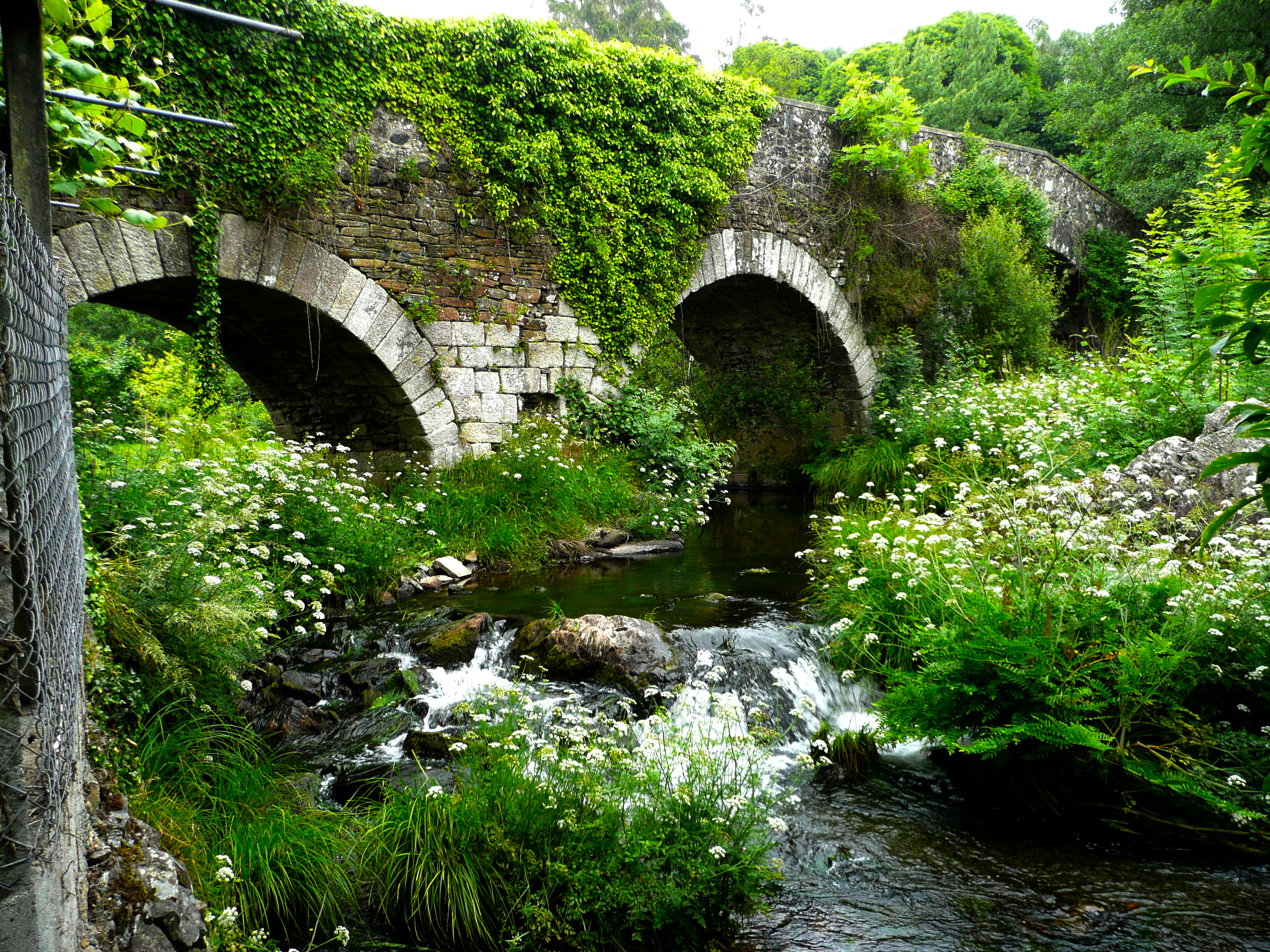 As part of the nature that surrounds them, covered with moss and vegetation, arched stone on stone, they are still there, through the centuries, determined to smooth the way, letting the torrents …… saluting the walker ….. M. Benítez Carrasco procaims so ….