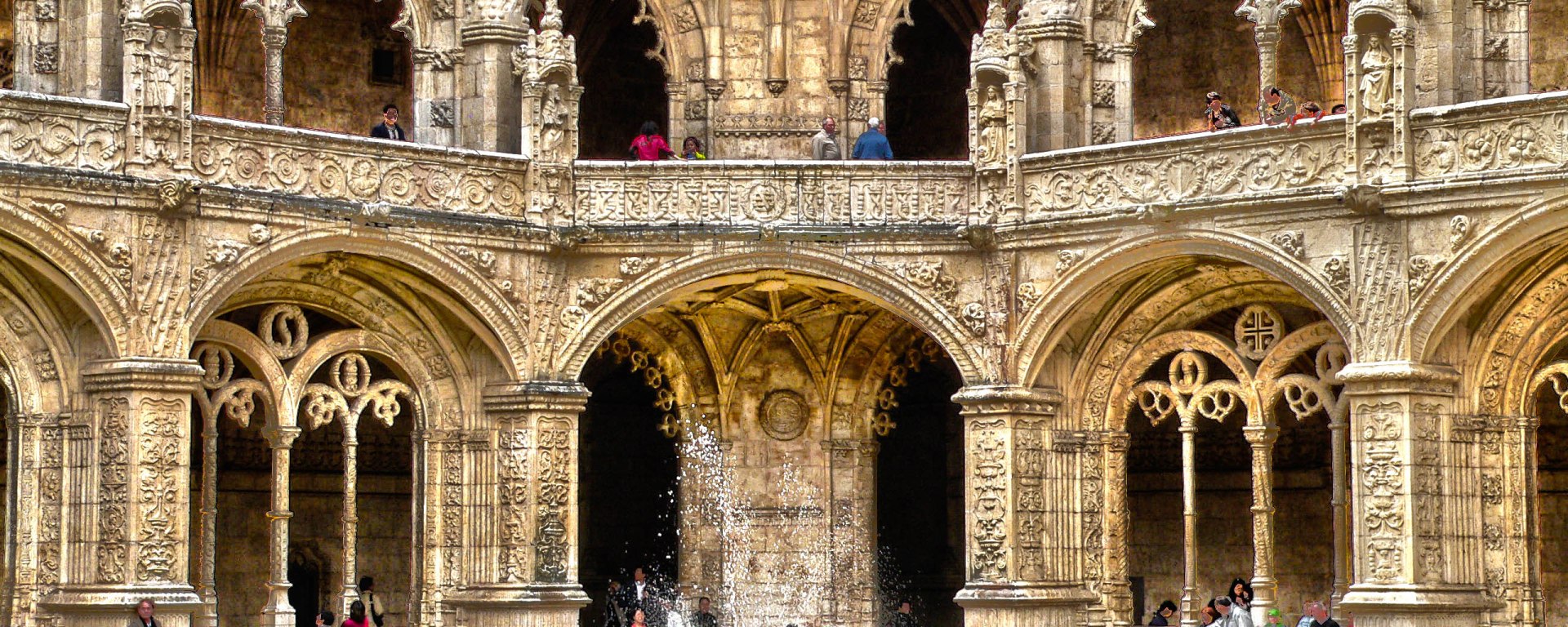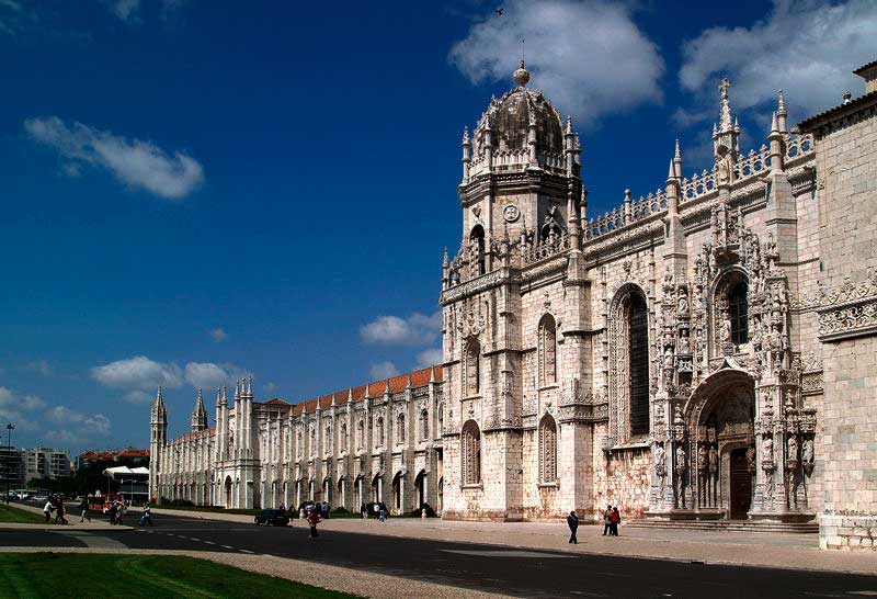 El gigantesco monasterio forma también parte del Patrimonio de la Humanidad, junto con la Torre de Belém. Con ella comparte el estilo arquitectónico y la época de construcción (las obras comenzaron en 1501) en pleno apogeo de los “Descubrimientos”. El Rey Manuel I lo mandó construir para celebrar el feliz regreso de Vasco de Gama desde la India. Se levantó pues, como símbolo del expansionismo portugués y se utilizó para despedir y saludar a los navegantes en sus largos viajes. El monasterio fue confiado a la Orden de San Jerónimo y sus monjes permanecieron en él hasta 1833, año en que fueron expulsados y el complejo fue secularizado.