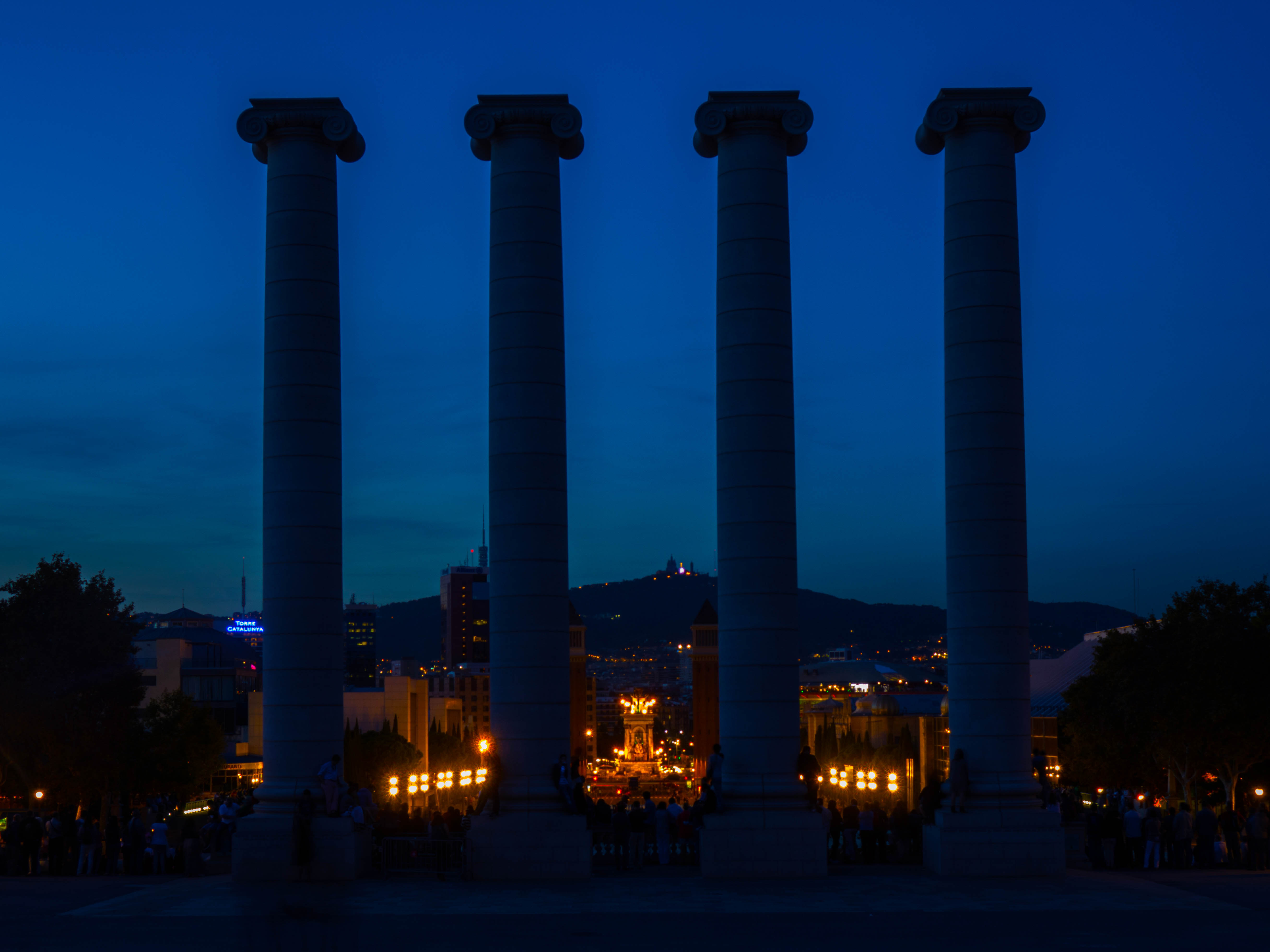 Estas cuatro columnas jónicas representan las cuatro barras de la bandera catalana. These four Ionic columns represent the four stripes of the Catalan flag.