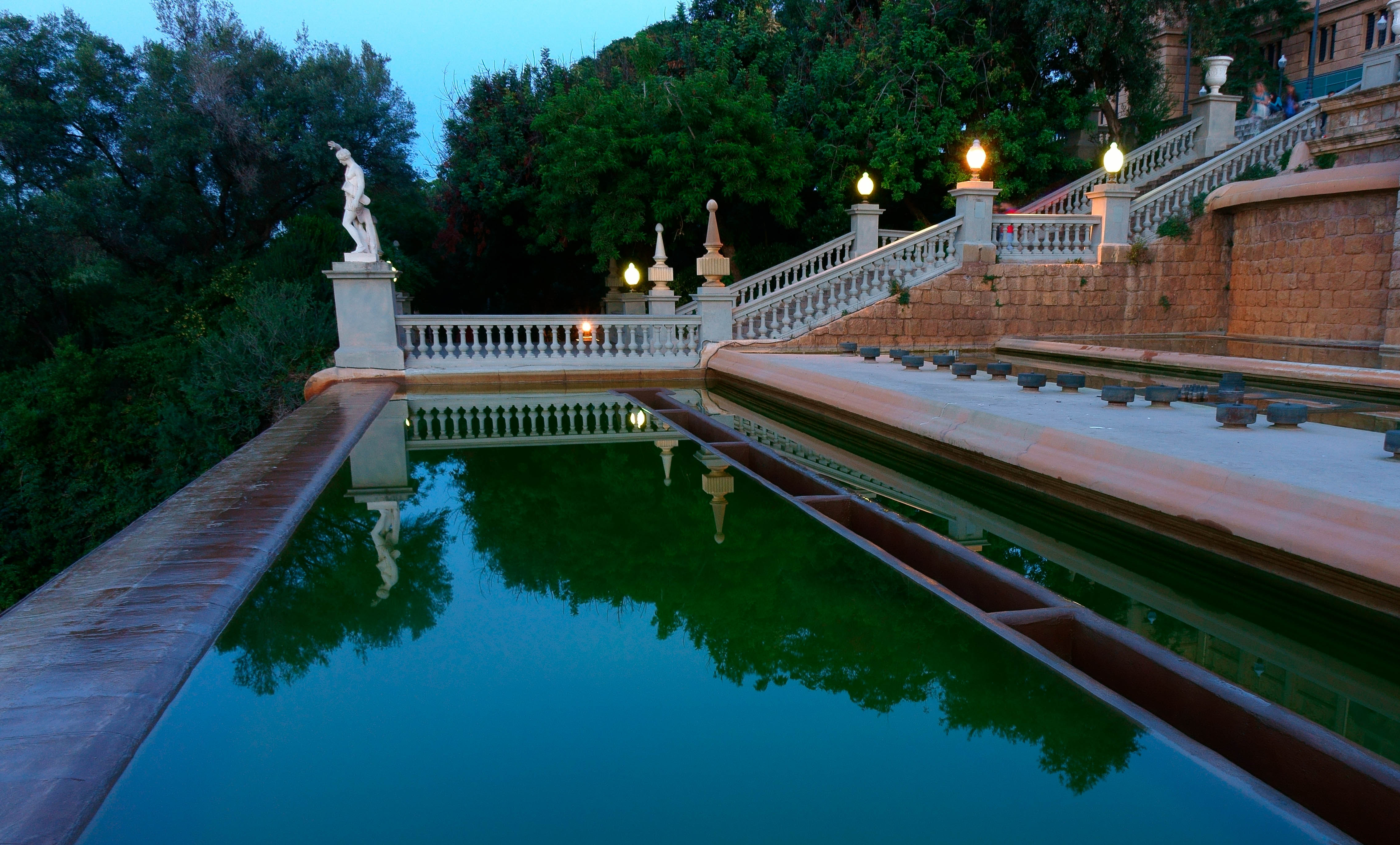 There is a space in my town with a special charm, is the area between the Plaza España and the Palacio Nacional. Most of the buildings in this area were created to house the International Exhibition of 1929. The night makes it even more spectacular, with a careful and suggestive artificial lighting, the place becomes an attractive and grandiose spectacle. It is the best time to sit and absorb it in your memories and in your camera.
