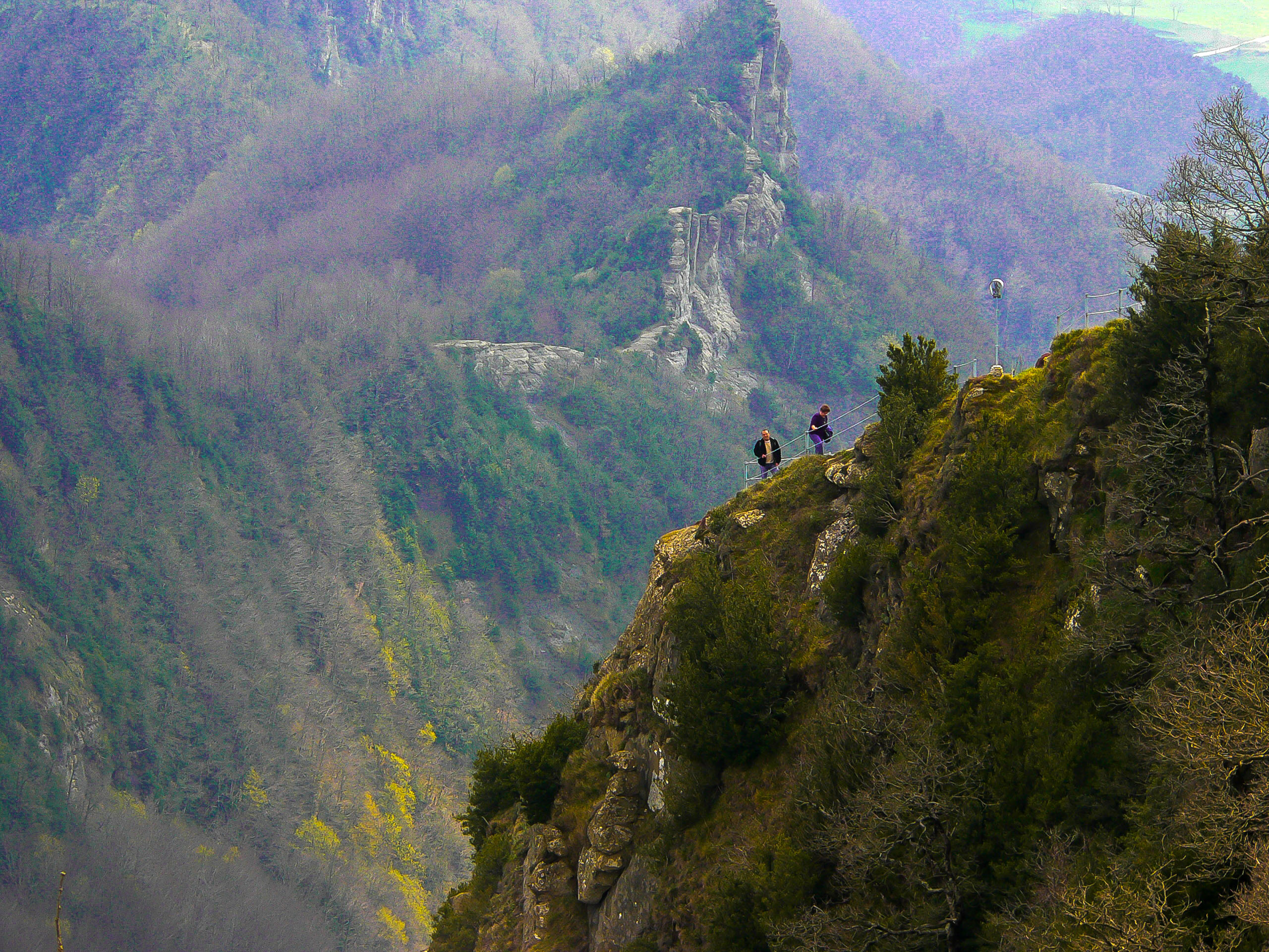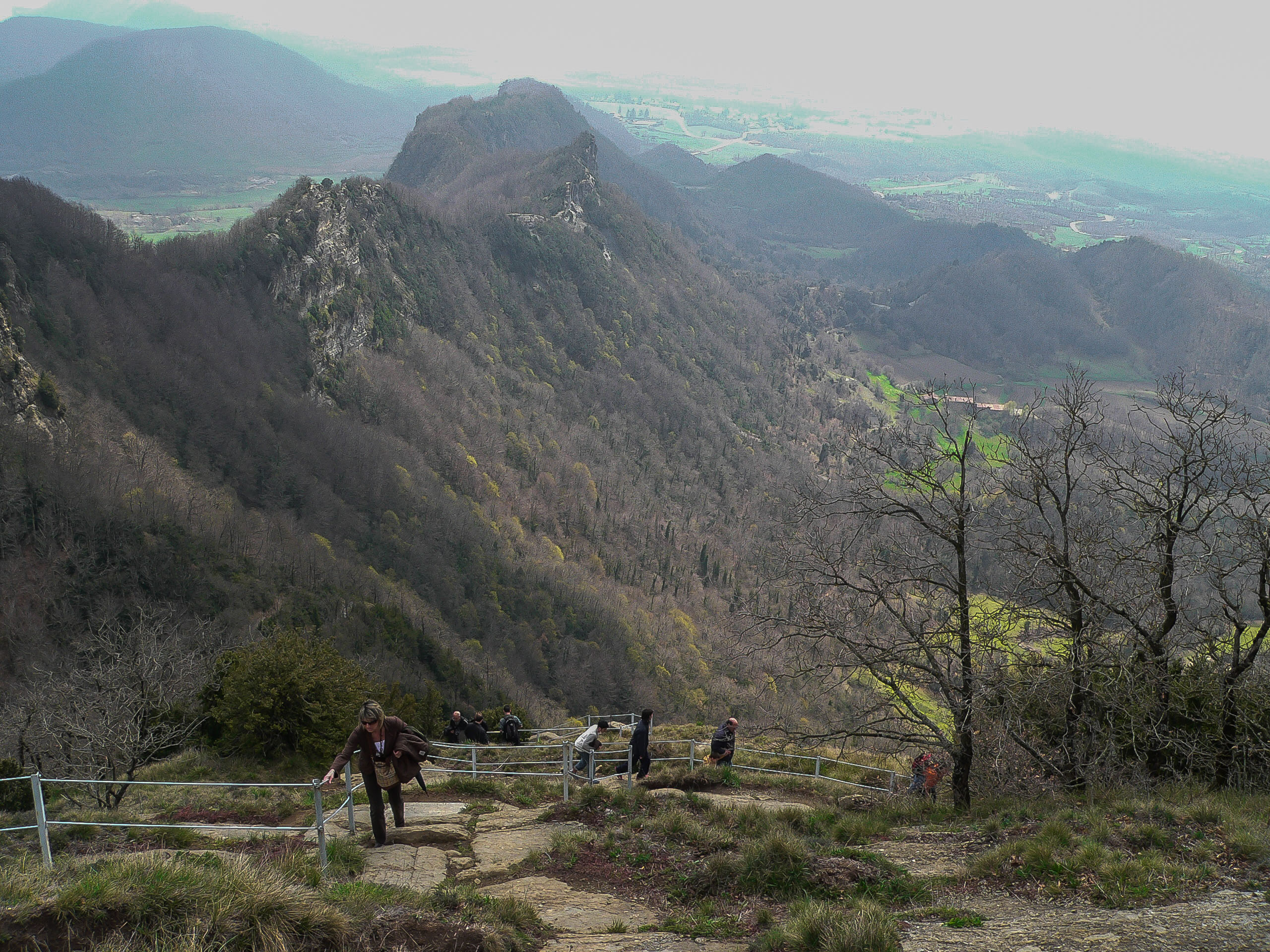 Para subir al Santuario existen dos alternativas. Por el zigzagueante camino de la Serrica o por las agotadoras y espectaculares escaleras esculpidas en la roca, no aptas para los que pedecéis de vértigo. Nosotros, como no, subimos por las escaleras.