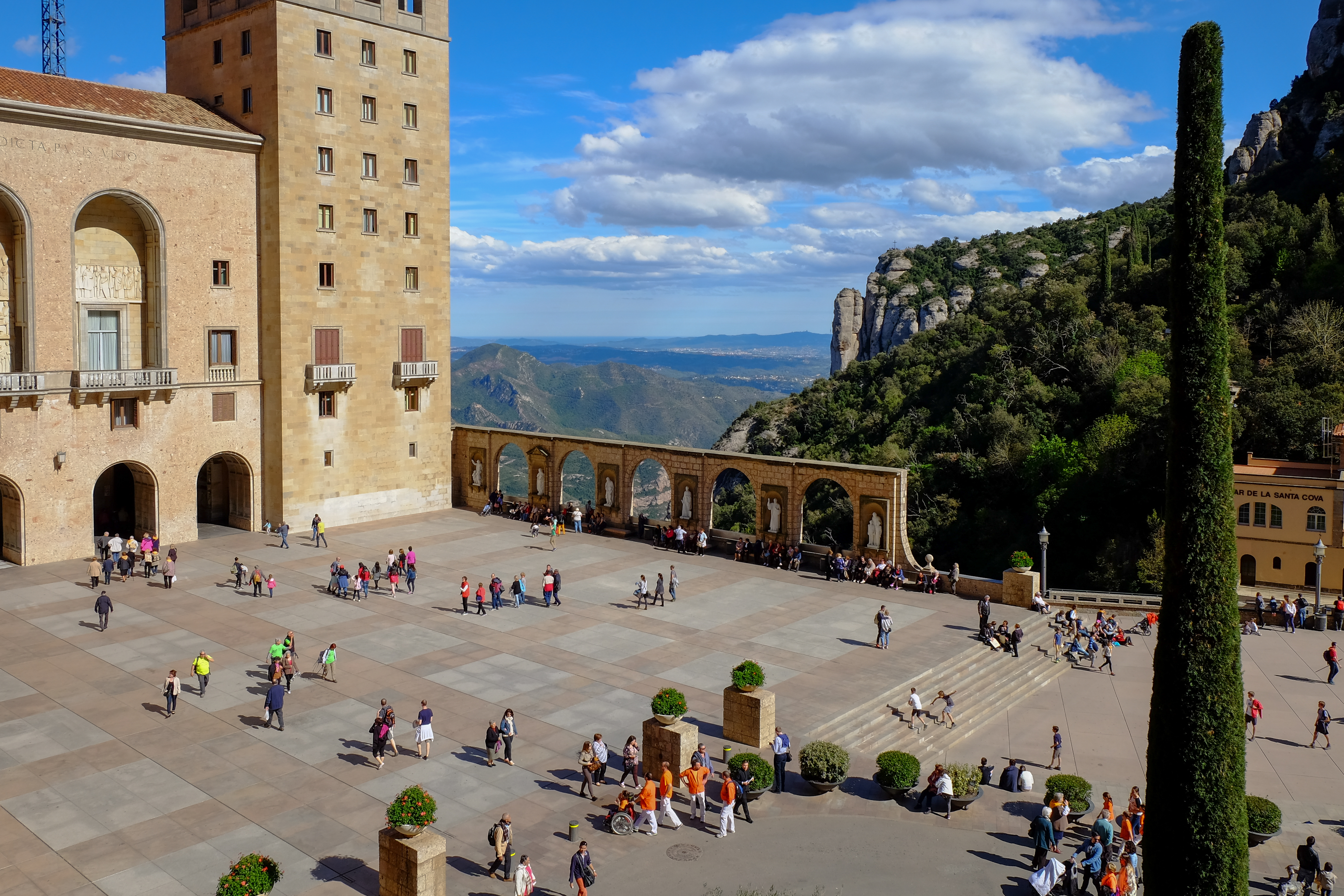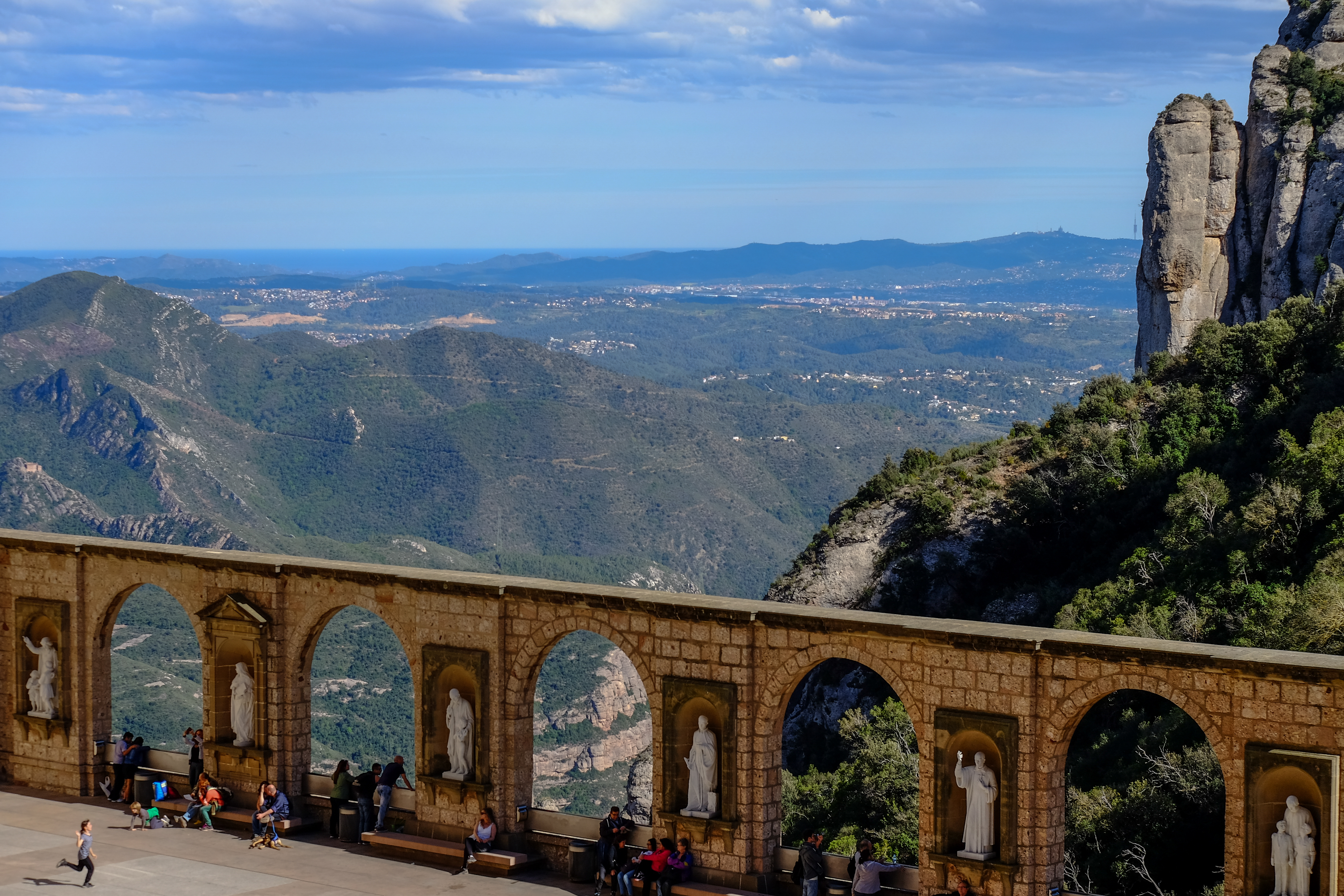 It’s lucky watch the sunset from the Monastery of Montserrat, especially in a clear day was Sunday. After the silhouette of the Montserrat Mountains we can see the region of Western Valles and Tibidabo mountain background, hiding the city of Barcelona. In the distance the horizon of the Mediterranean Sea are also visible.