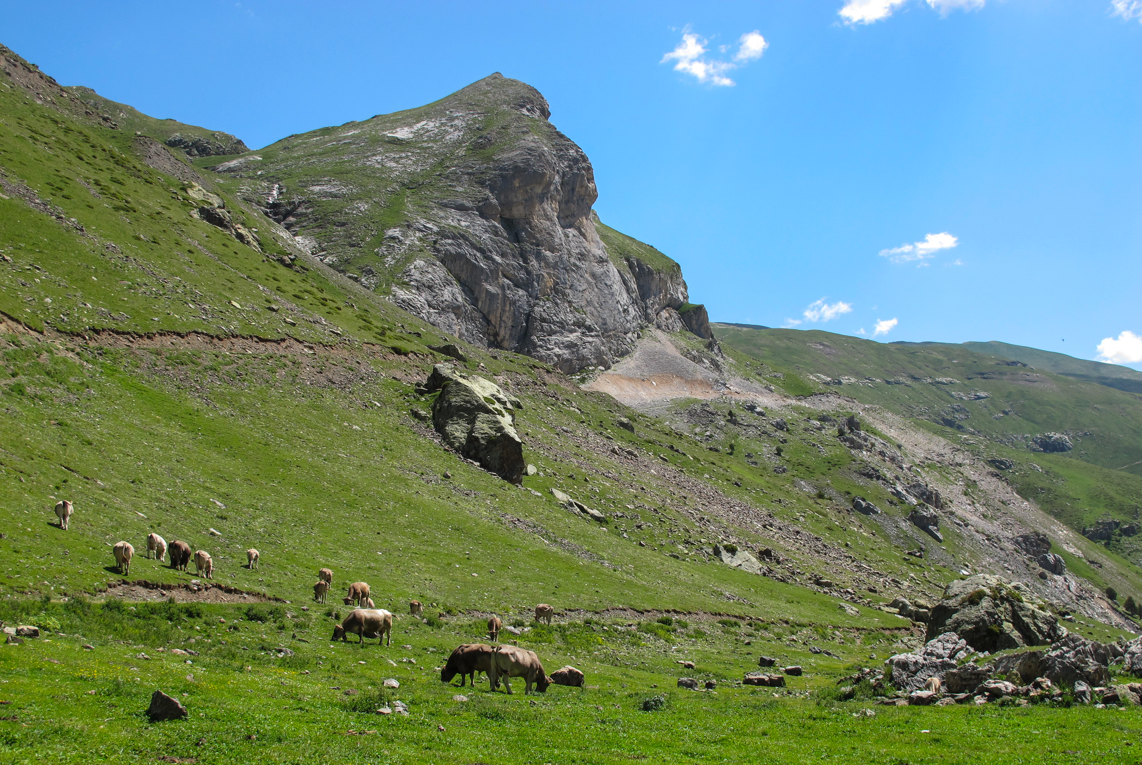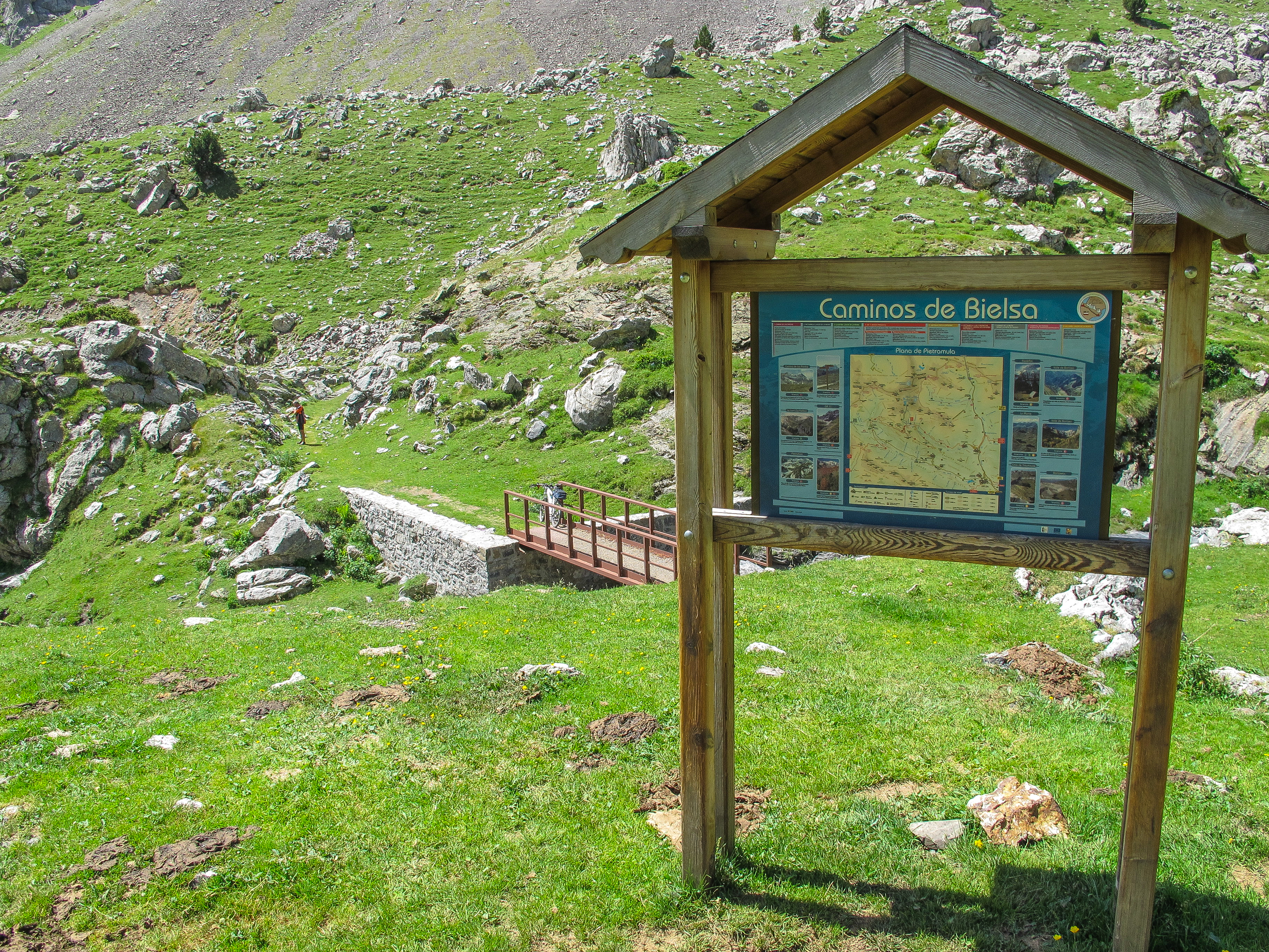Es un recorrido en el que deberemos andar casi 5 km. por una senda que se deteriora cada año más y que salvo a pequeños tramos, es imposible de pedalear. Podemos ver gran cantidad de madrigueras de marmota y si prestamos atención no es difícil ver alguna. La vertiente del valle de Pineta es más arbolada y a pesar de estar jalonada por picos de más de tres mil metros, su fondo es más acogedor y menos agreste.