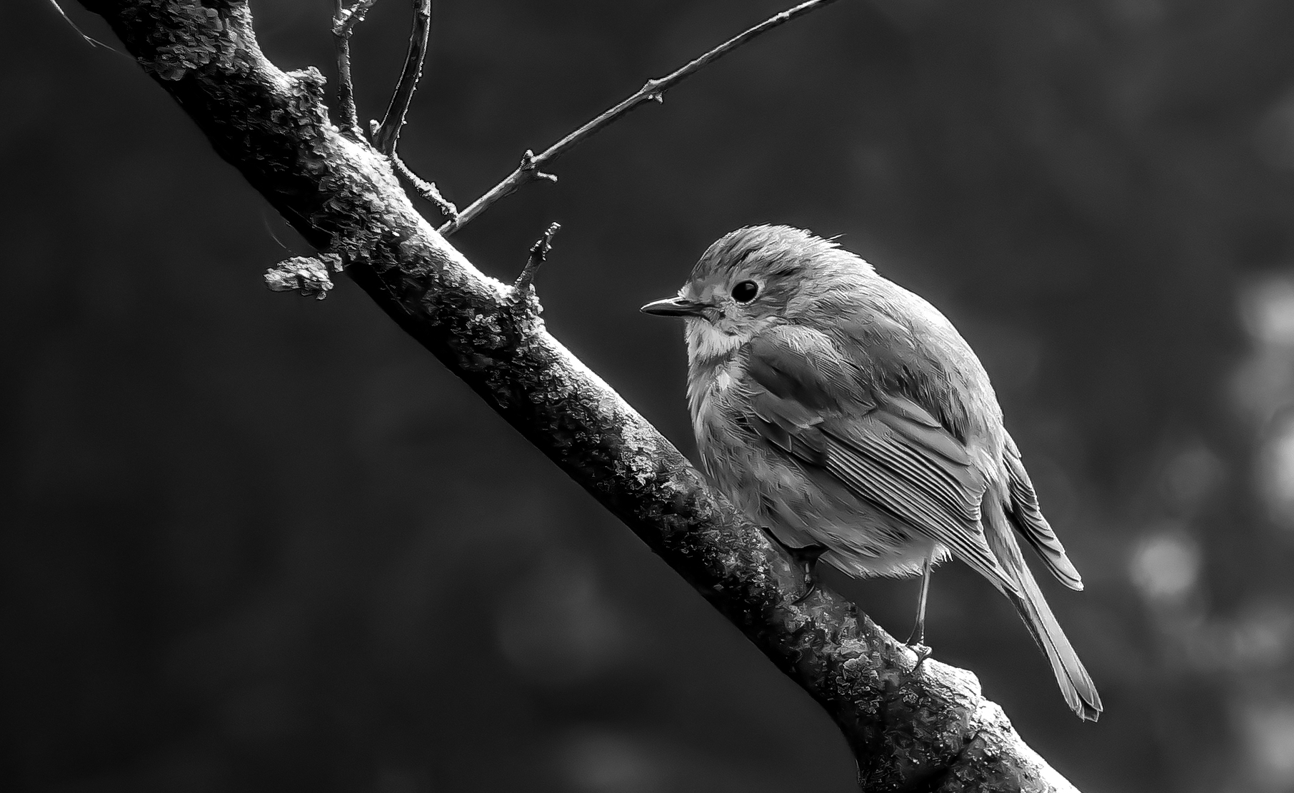 Hermosa fotografía y precioso petirrojo; el BN impecable. ¡Me encanta!