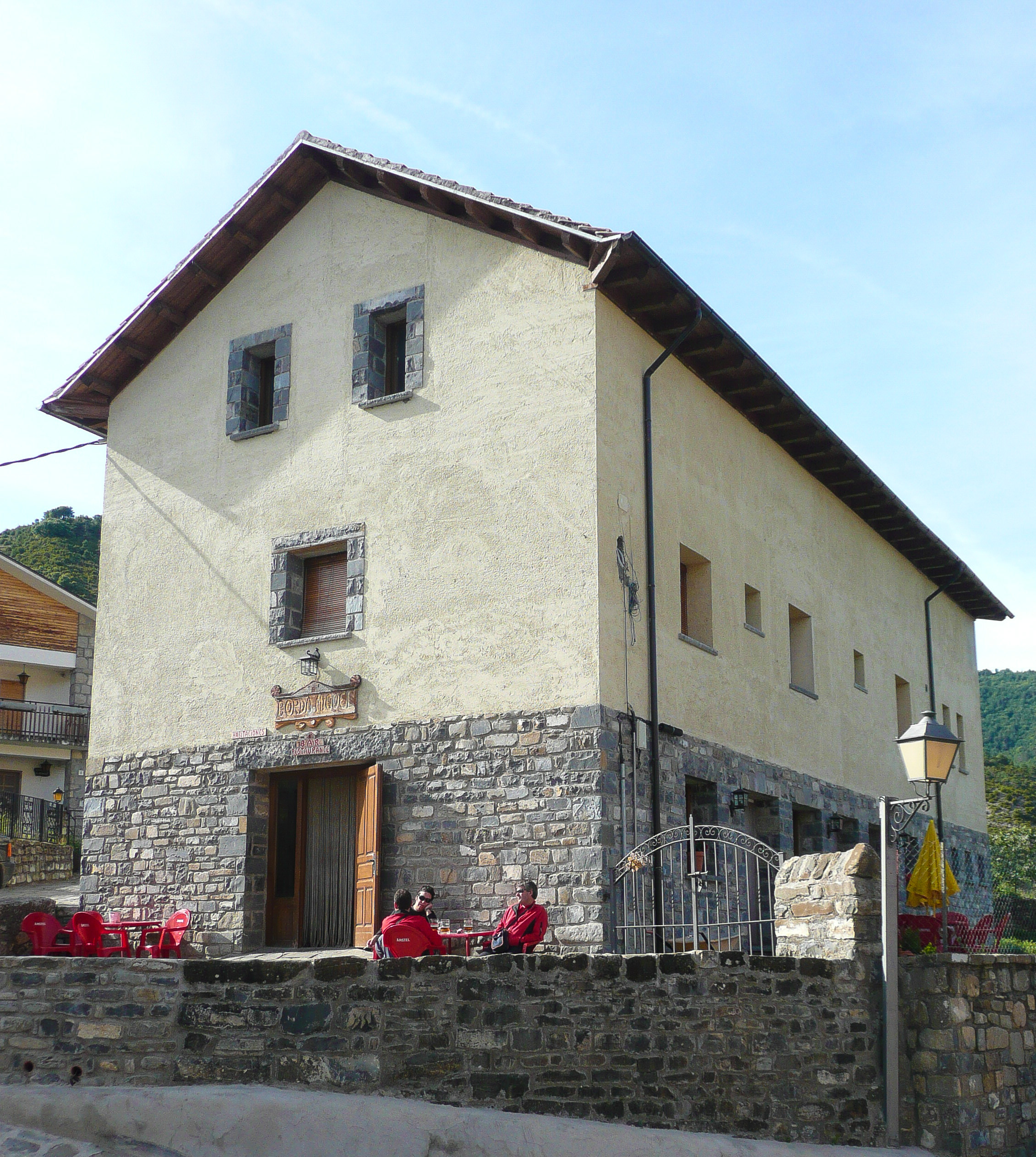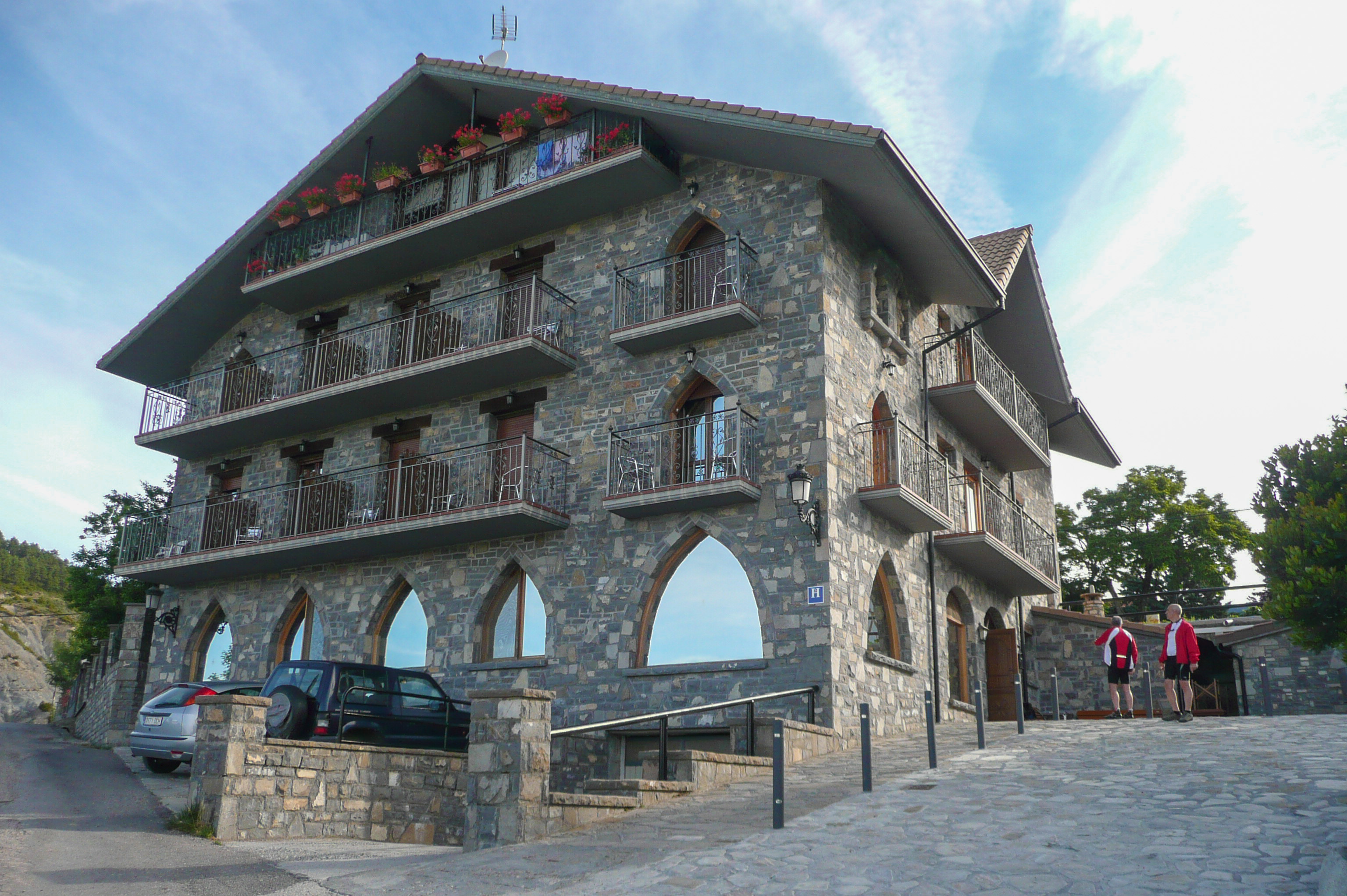 Llegamos a Hecho, bella localidad donde vamos a encontrarnos un casco urbano, con una destacada arquitectura popular, con elementos tan propios como las grandes balconadas que se abren en ricas fachadas de piedra, con interesantes detalles en los accesos y vanos, pendientes techumbres de pizarra, coronadas por las típicas chimeneas de la zona, de formas troncocónicas y varios metros de altura.