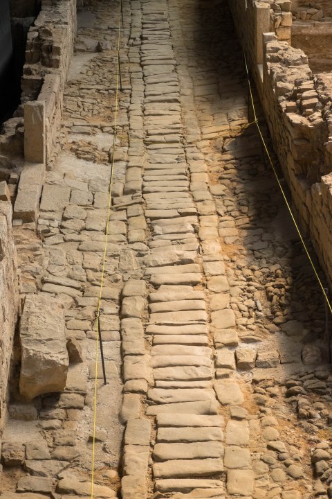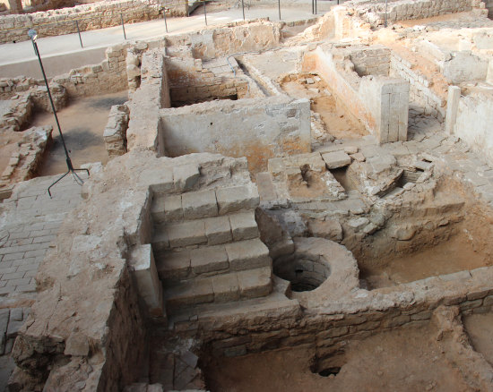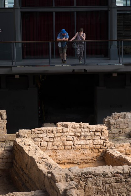 Sobre los restos se han habilitado unas plataformas que forman anchos pasillos que permiten visionar el yacimiento desde el aire. Una baranda rodea el perímetro con paneles explicativos sobre la historia de los restos, permitiendo conocer y entender este yacimiento de 8.000 metros cuadrados.