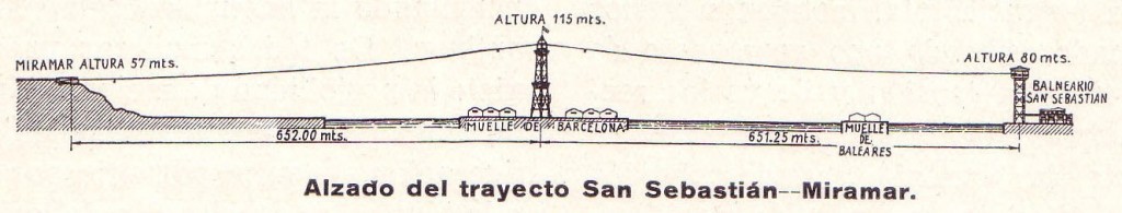 Este transporte une tres puntos: la Torre de San Sebastián, la Torre de Jaume I y Miramar. En la Torre de San Sebastián, donde se inicia la gran escollera del puerto, se encuentra un restaurante inaugurado en 2002, el cual permite realizar una comida o cena con unas vistas inmejorables de la ciudad y el mar. Junto a la Torre de Jaume I se encuentra el World Trade Centre, un centro de negocios, con salas de reuniones, hotel y auditorio, ubicado en un edificio imponente de estructura muy original, cuya estética resalta con todo el mar que la rodea. Las fachadas están recubiertas de vidrio y placas de hormigón de color blanco y beige que dan una tonalidad especial al conjunto. El tercer punto del recorrido es en Miramar, en la montaña de Montjuïc, a 80 metros de altitud. Cerca de la entrada al teleférico se puede coger otro teleférico, el de Montjuïc, que nos lleva al Castillo de Montjuïc, fortaleza militar con museo incluido, que destaca sobre todo por sus magníficas vistas de la ciudad, gracias al hecho de encontrarse en la cima de la montaña, a más de 170 metros de altitud.