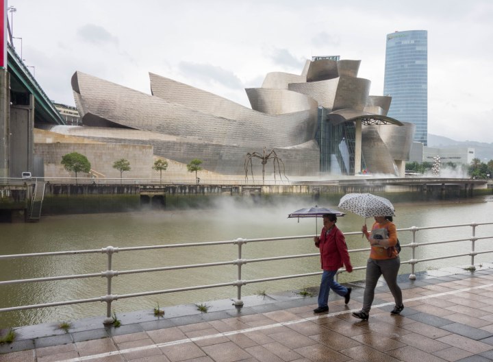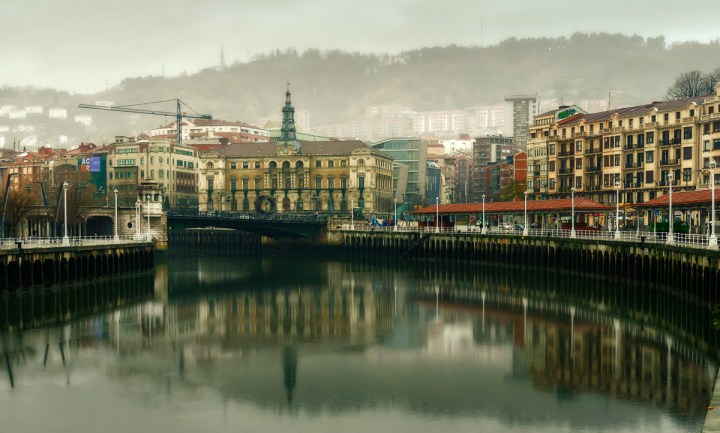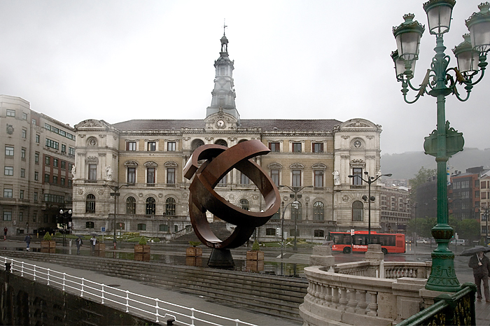 Después de pasar una noche de lujo en el hotel Gran Bilbao (4 *), el día amaneció desapacible, de nuevo con lluvia. Después de desayunar, emprendimos la segunda jornada atravesando la ciudad por la ribera derecha de la ría, en medio de un desagradable tráfico.