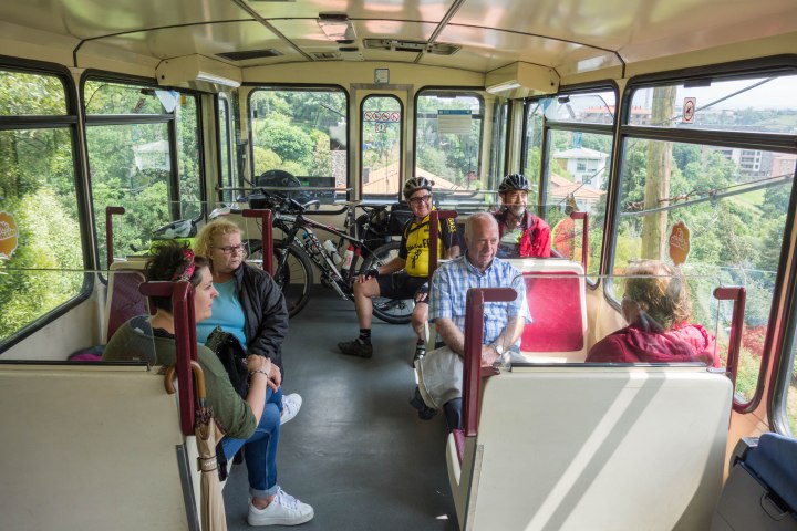 Pero esta ascensión nos dio la oportunidad de subirla cómodamente, el funicular que une Trapagaran y Larreineta, nos estaba esperando y no lo dudamos ni un segundo. La mañana se nos estaba haciendo «perra».