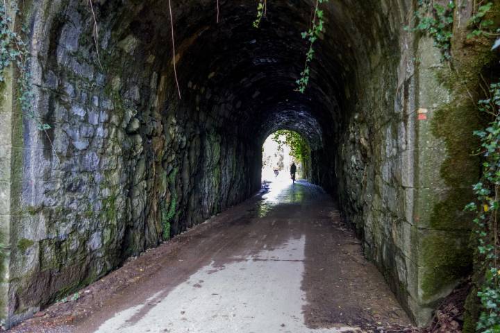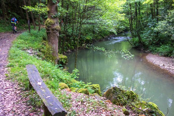 Reanudamos la marcha bordeando otra vez el río, por el encantador y bello sendero de los Molinos, durante unos tres kilómetros hasta acceder a la carretera y luego a la Vía Verde Montes de Hierro, por el puente Arenao.