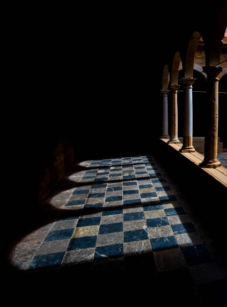 Avanzando por la puerta principal y antes del claustro menor, llegamos a la Plaza de la Iglesia