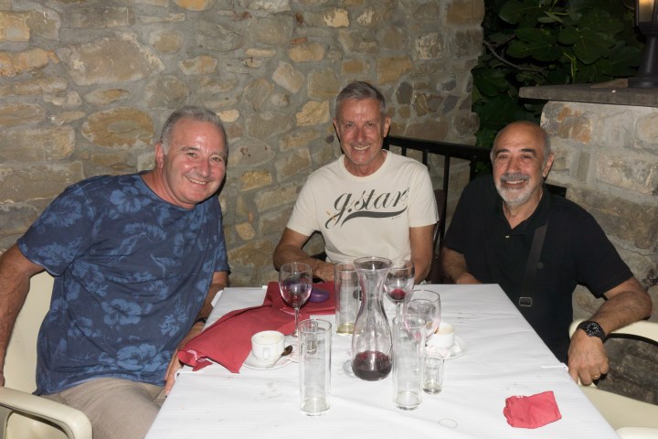Cena de despedida de esta escapada de cinco días que anualmente, desde hace 23 años, nunca falta en nuestra agenda. Santi, Jacint y Tomás ¡y que siga muchos años! Salud!