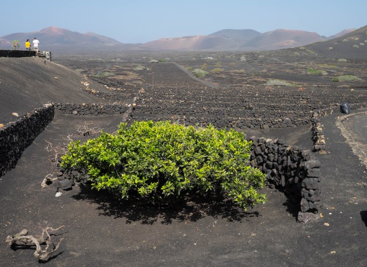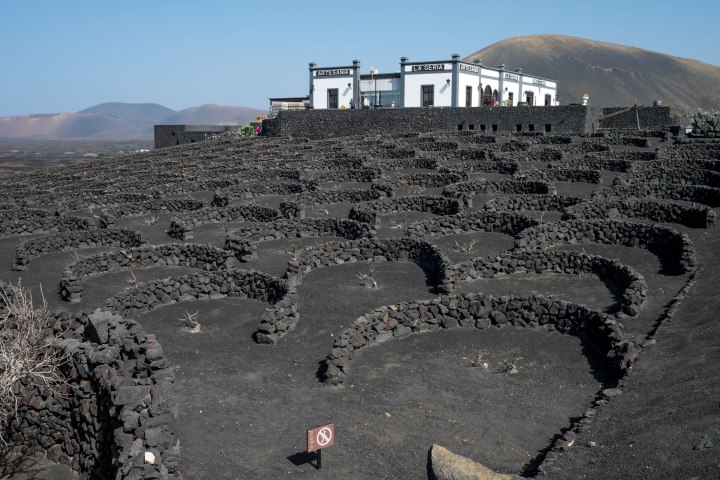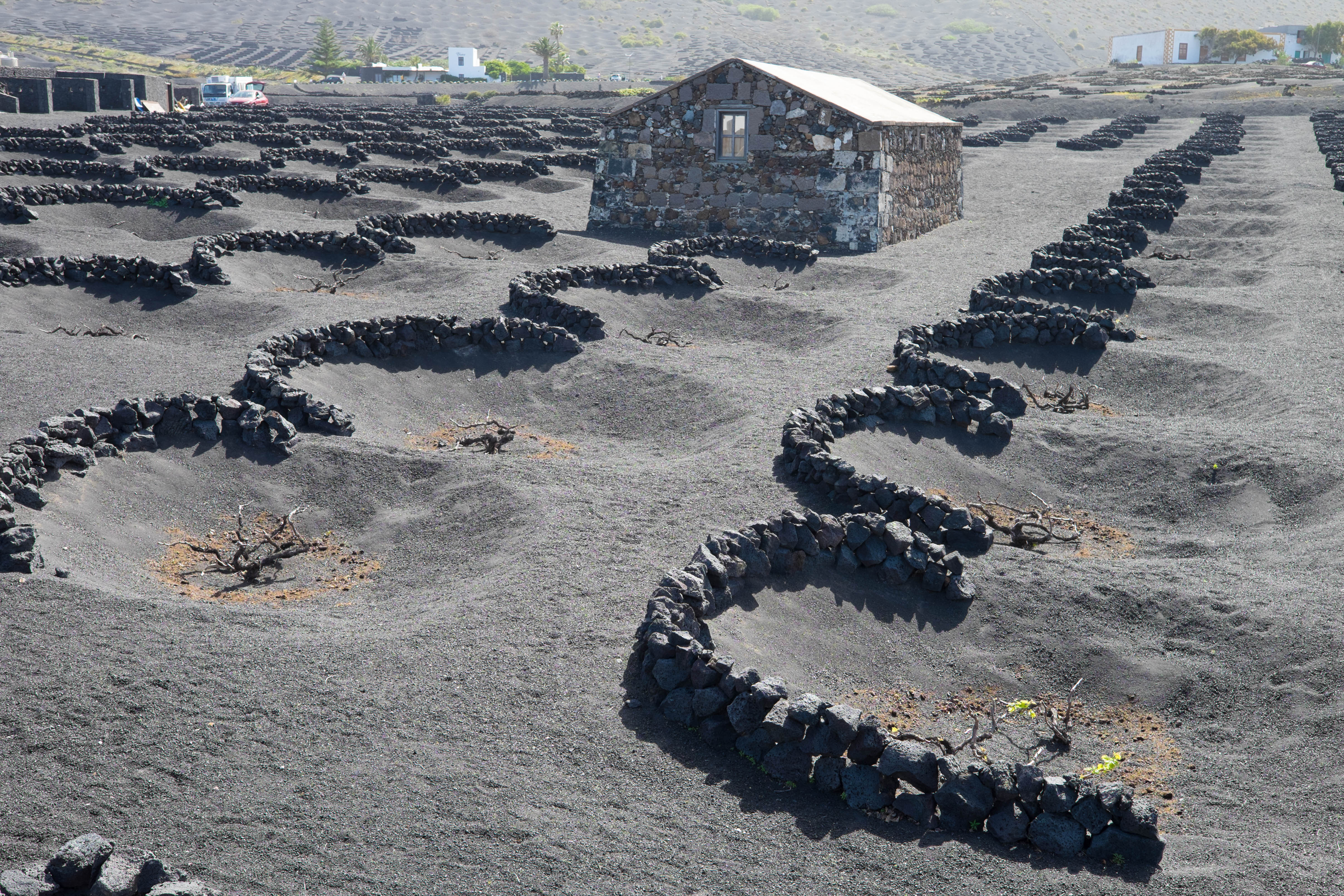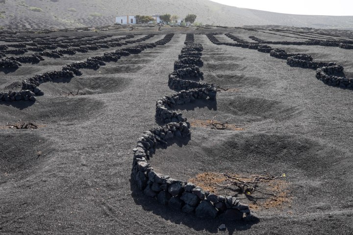 El vino también es esto. El Parque Natural de La Geria, en Lanzarote (Islas Canarias), un paisaje volcánico, casi lunar, viñedos escondidos en picones (de la variedad malvasía) y un páramo donde, sin embargo, hay vida. La del vino.