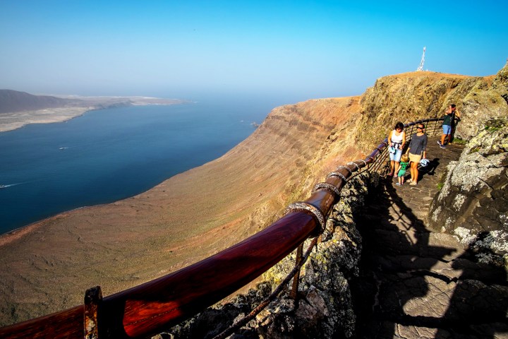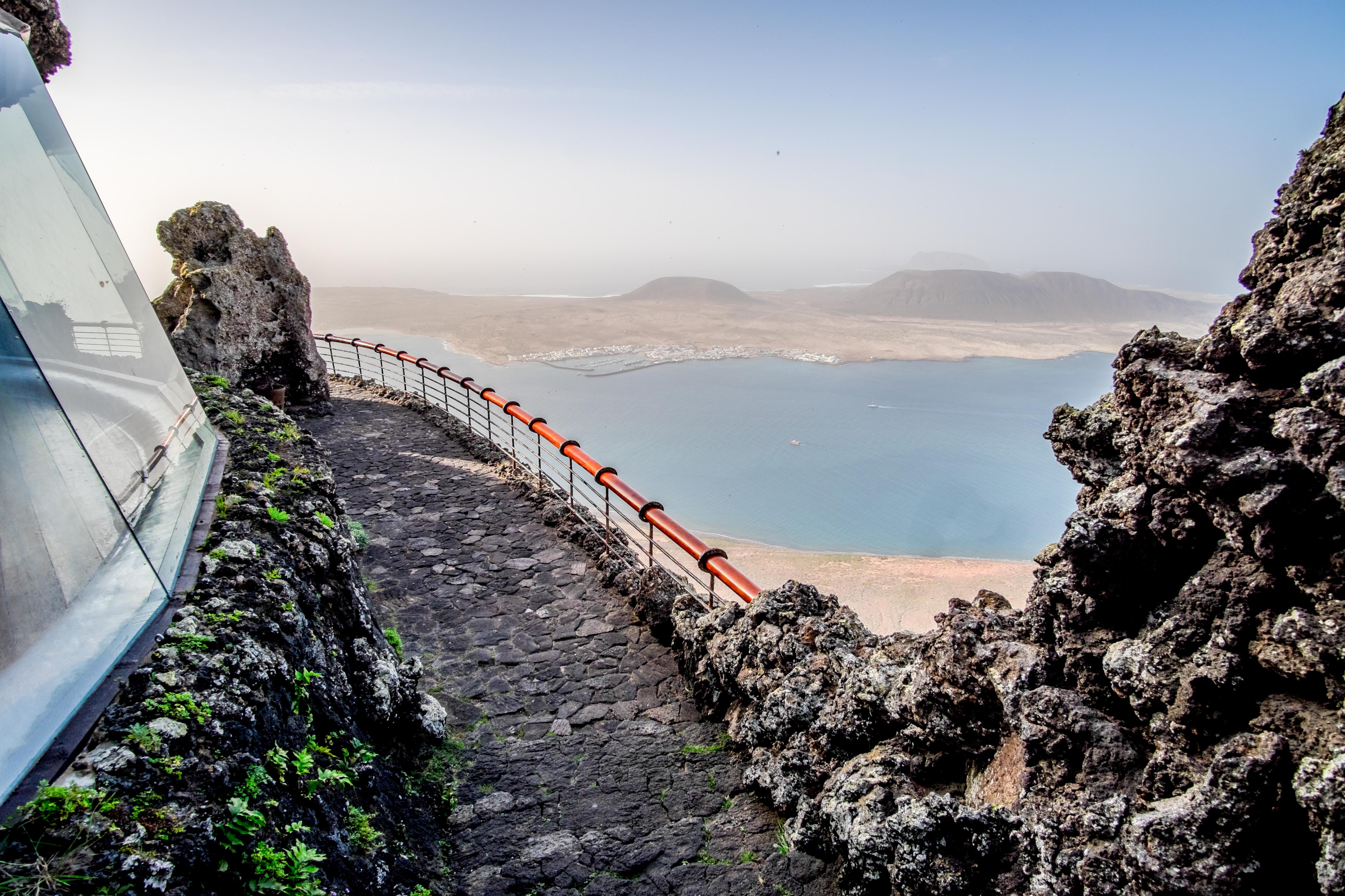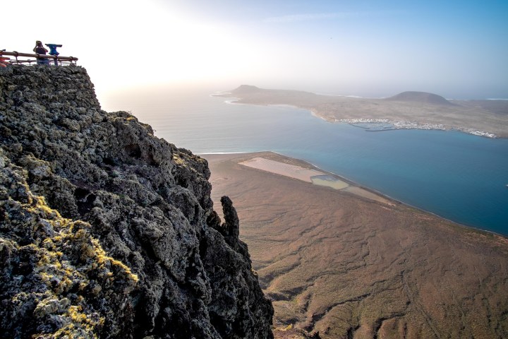 Mirando al norte desde su amplia barandilla aparecen tres pequeños islotes –el archipiélago Chinijo–, separados de Lanzarote por el estrecho que da nombre al mirador. El mayor de ellos es La Graciosa, que presume de conos volcánicos perfectos y de una amalgama de colores ocres y ‘beige’. El conjunto de los islotes, el mar, el cielo y la profundidad del acantilado transmite amplitud y libertad.