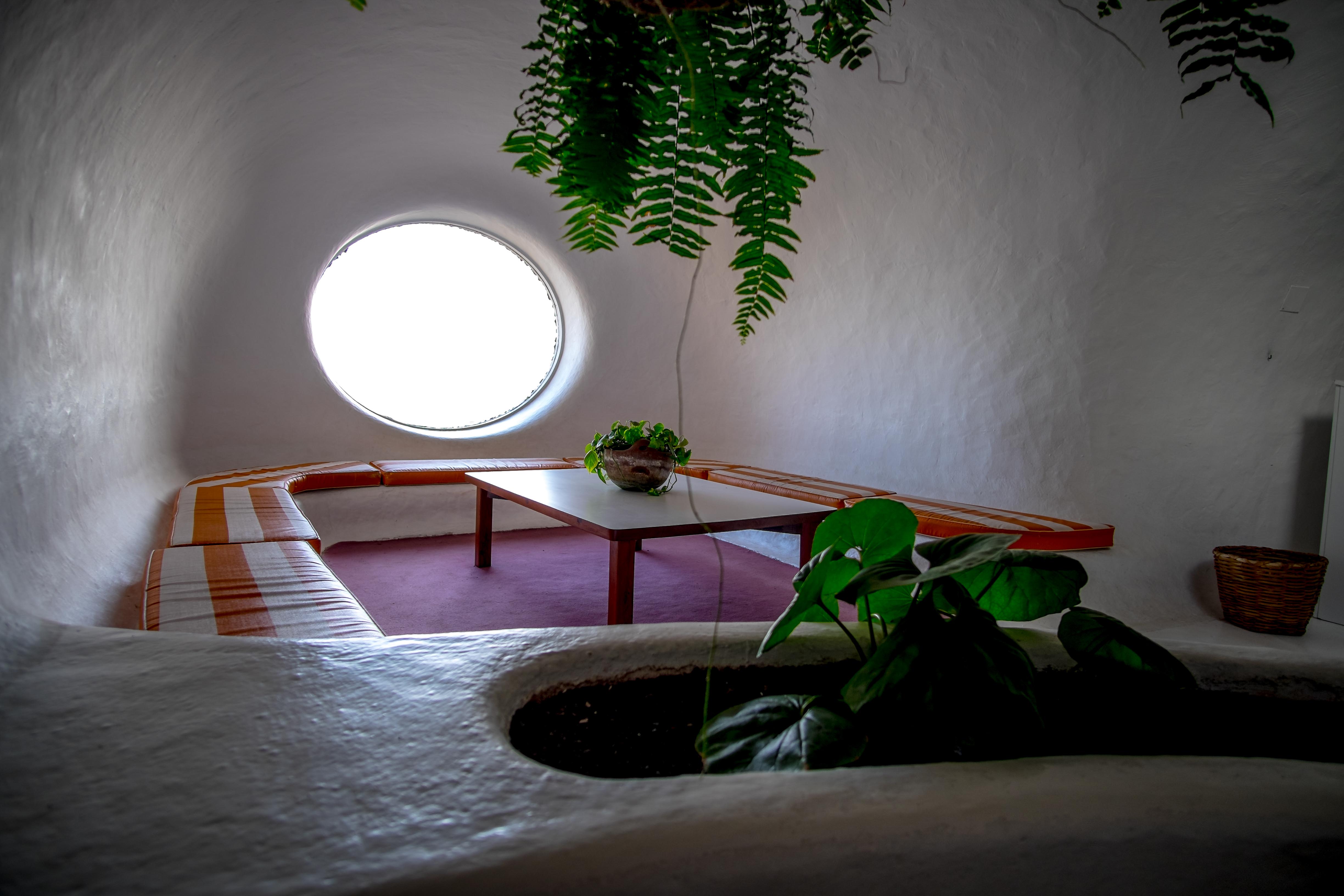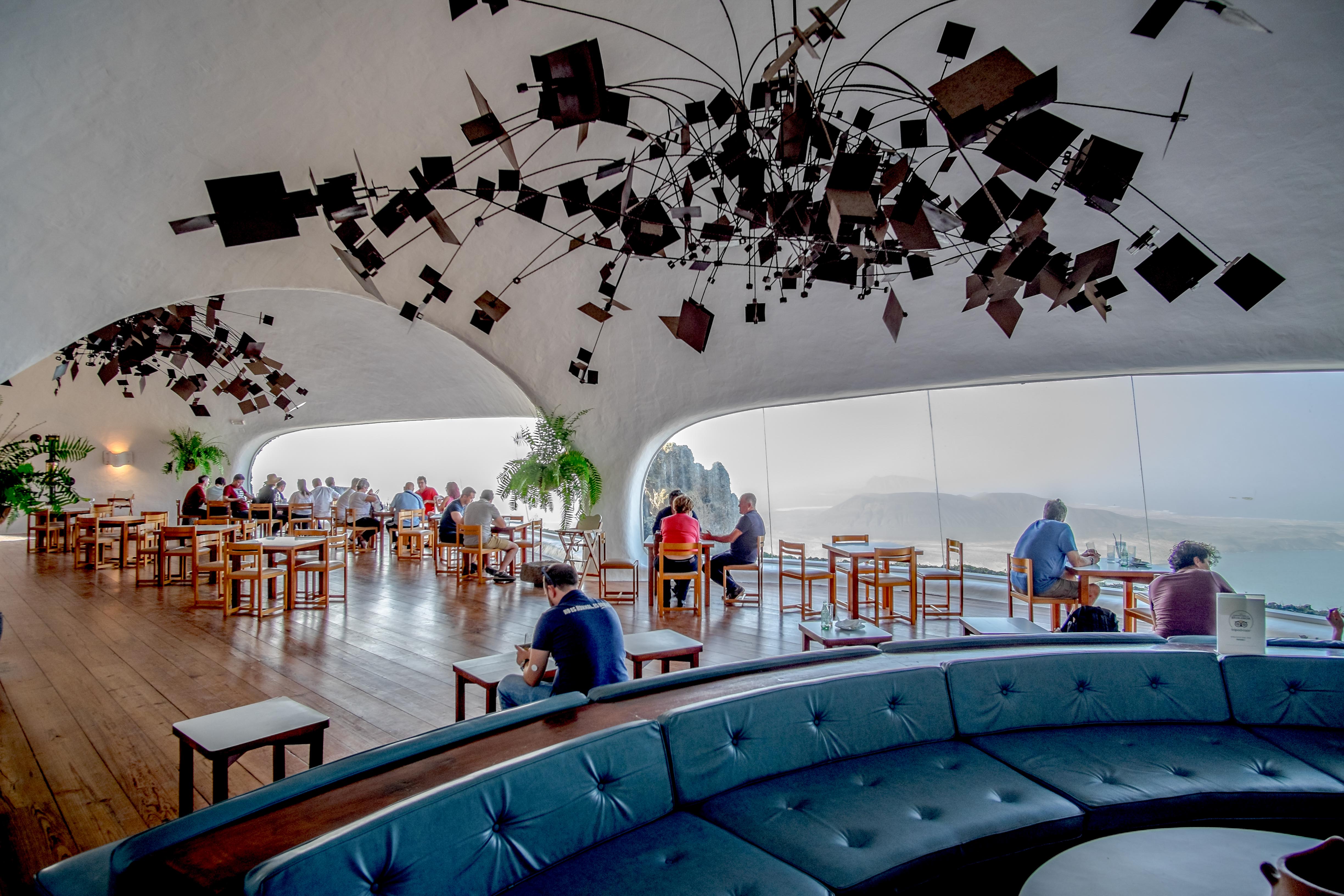 En este punto, en lo alto del imponente acantilado, hace años existía una antigua posición de artillería conocida como «Baterías del Río» (de finales del siglo XIX). Y aquí fue donde intervino el artista lanzaroteño, haciendo una excavación en el monte, construyendo en la hondonada un restaurante, y poniendo dos cúpulas en ese gran espacio, sobre el que se echó piedras volcánicas y tierra.