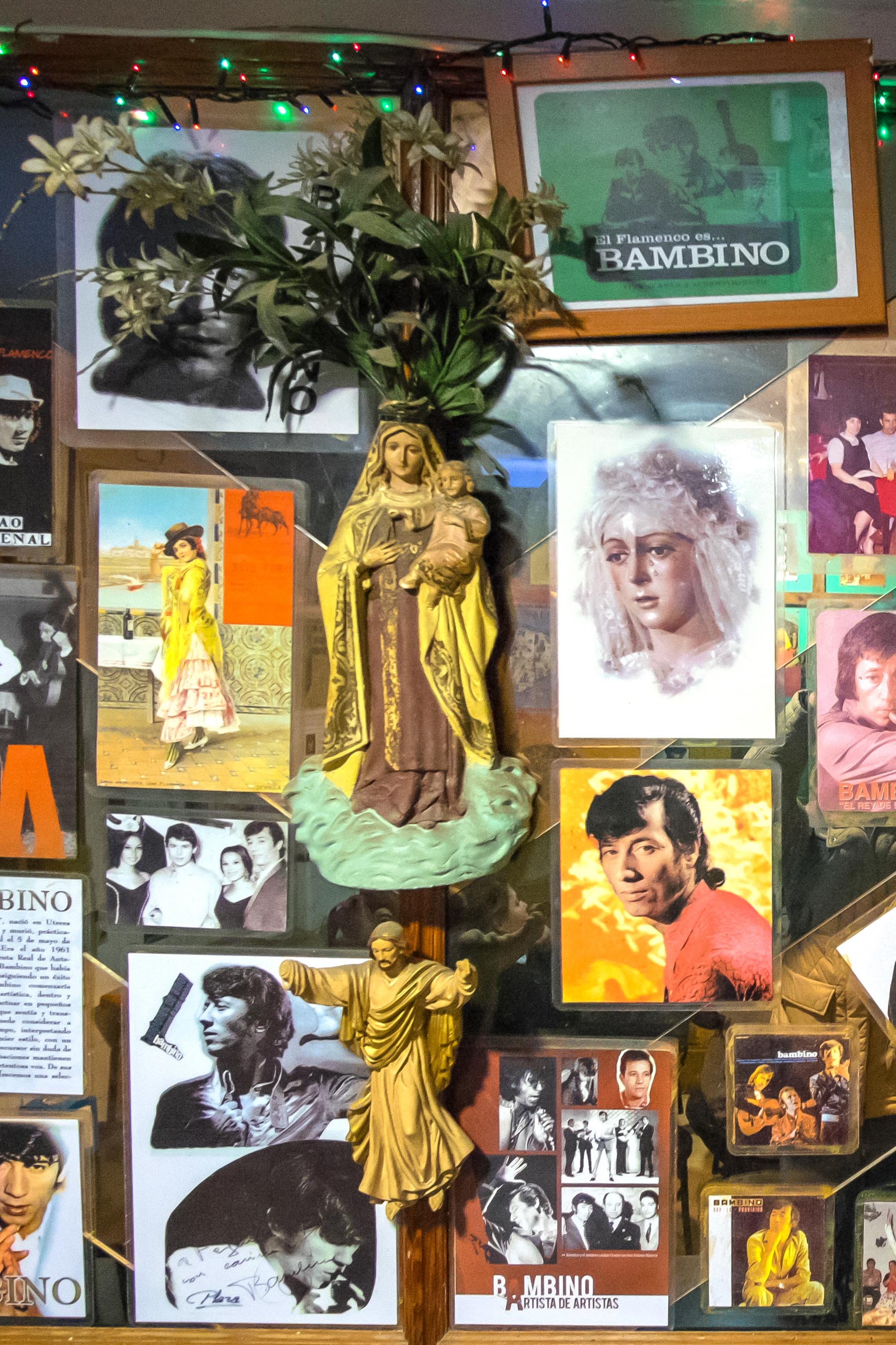El Bar Leo, para aquellos que no lo conozcan, es todo un templo homenaje a Bambino, uno de los grandes cantaores y rumberos flamencos de los años 60 y 70. Lo más recomendable es verlo con vuestros propios ojos, pero os podemos adelantar que es difícil encontrar un rincón del bar en el que no haya algún tipo de referencia suya. Bambino, a la par que amigo de Camarón, era íntimo amigo de la familia dueña del bar. Eso lo explica todo.