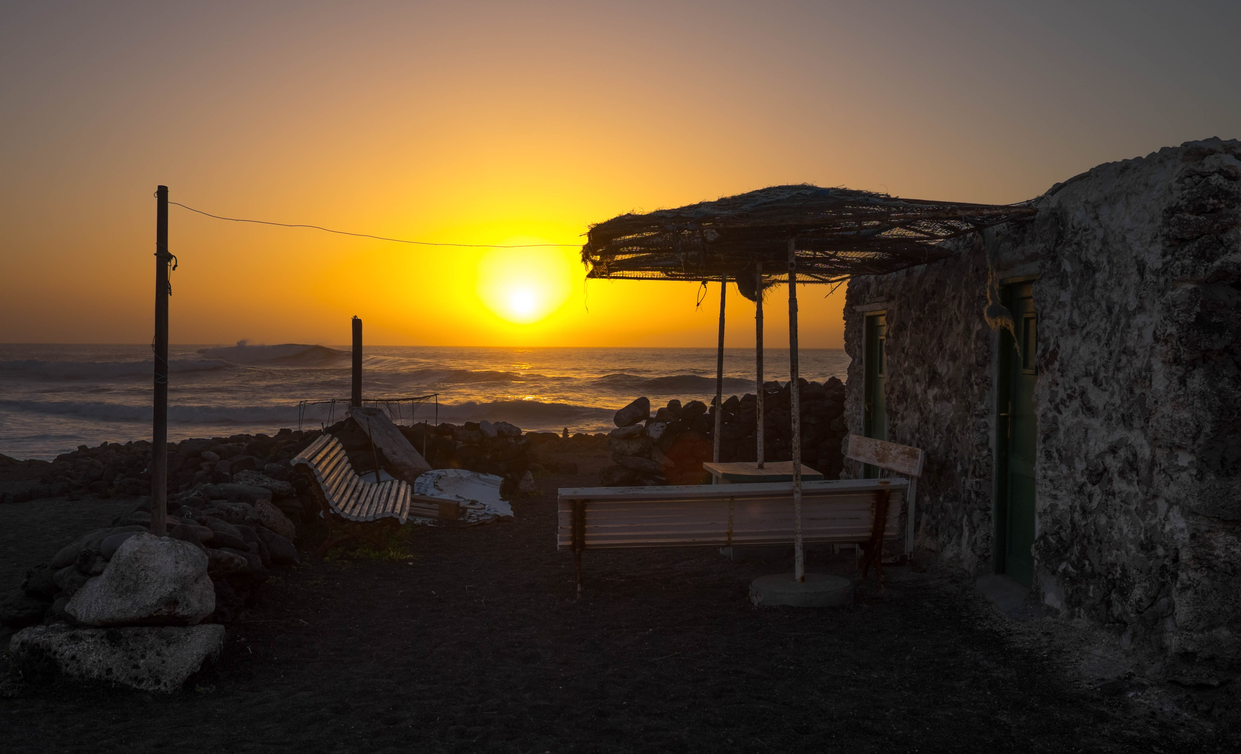 Junto a la playa formada por guijarros volcánicos, se acomodan humildemente, antiguas casas de pescadores.