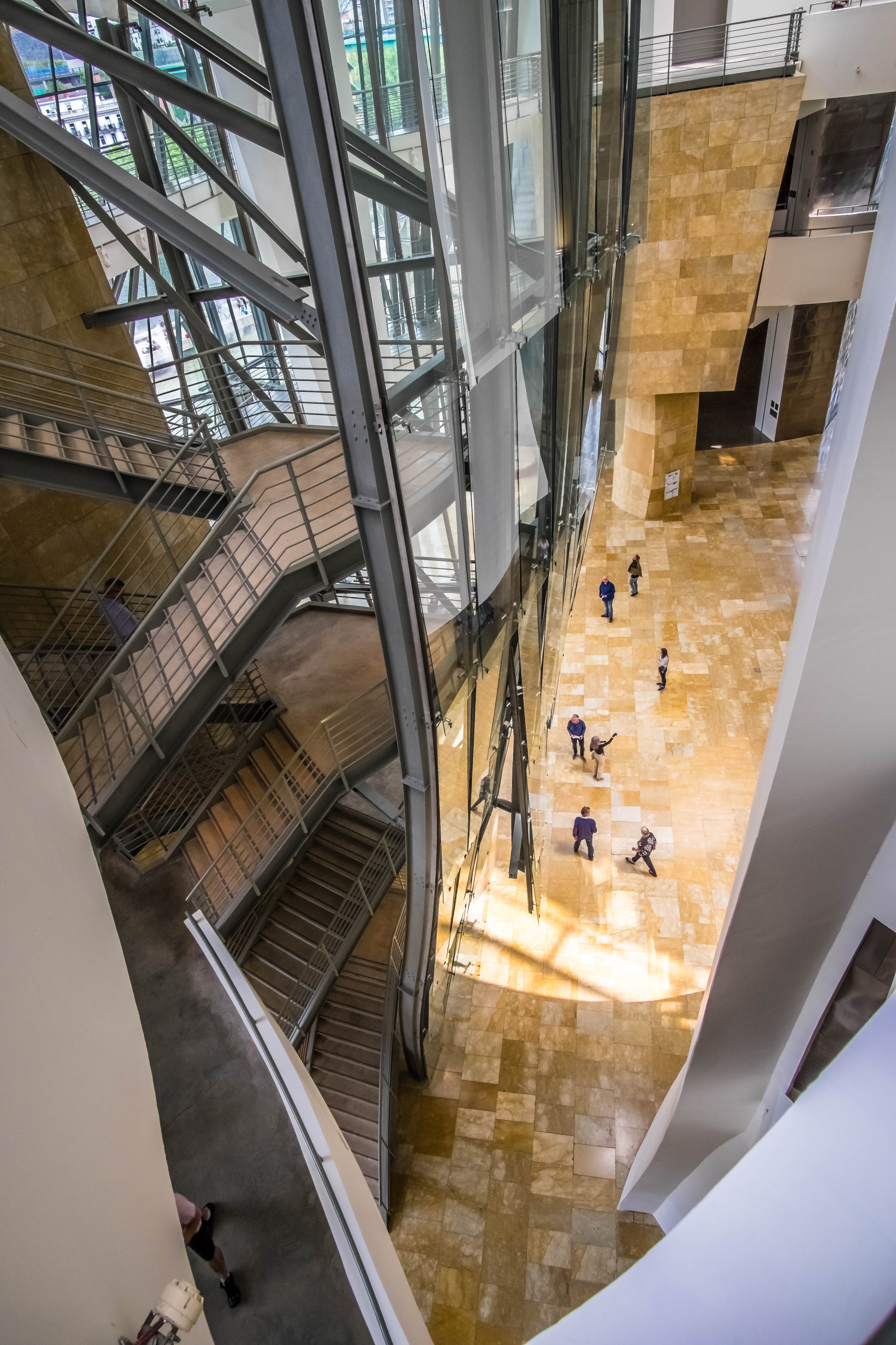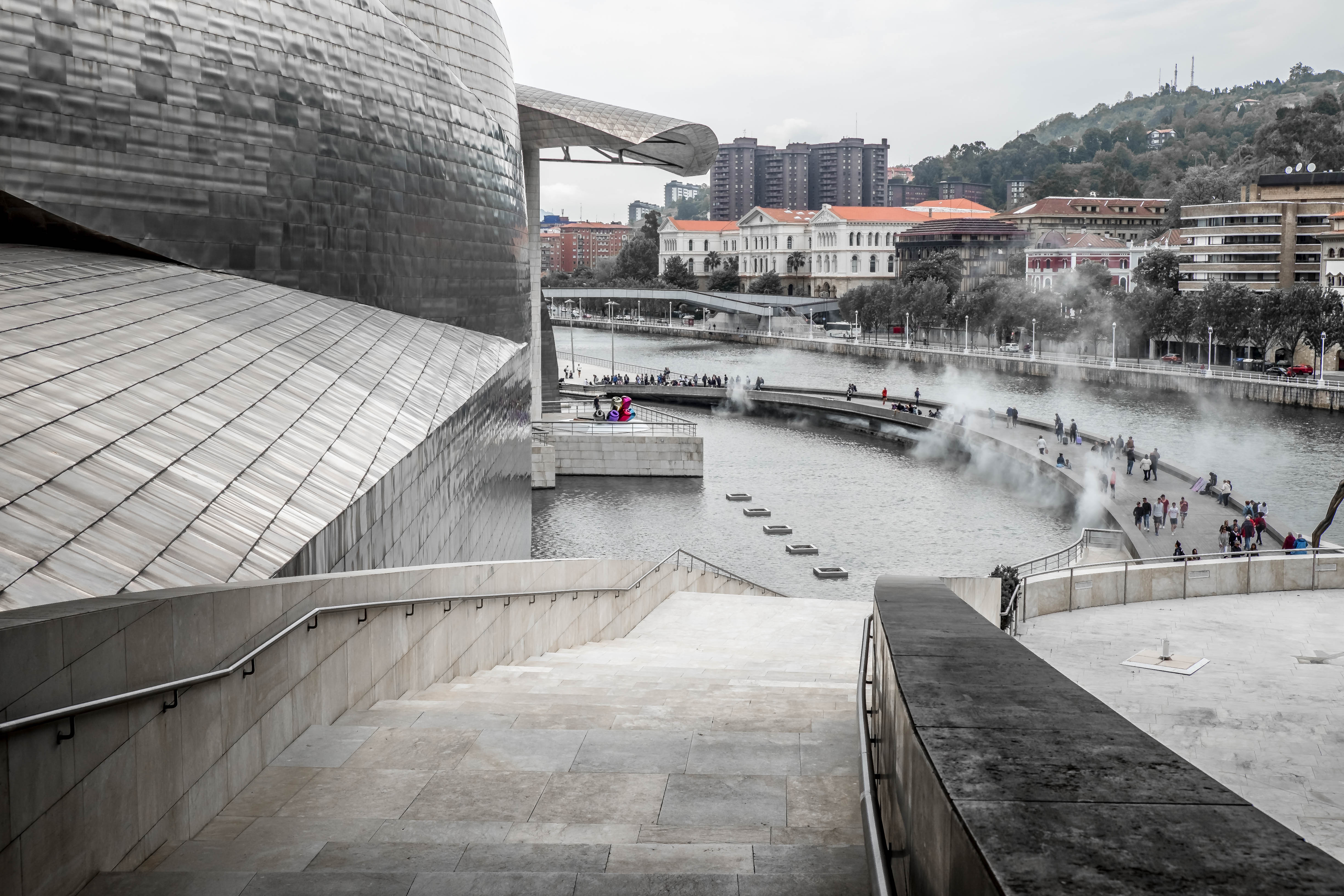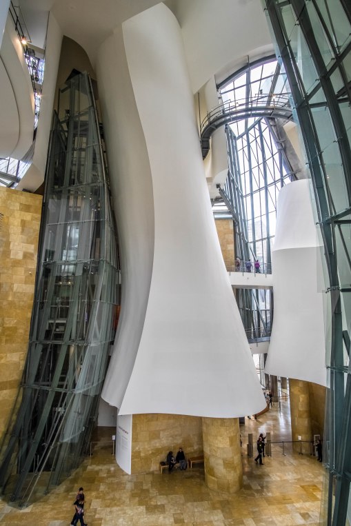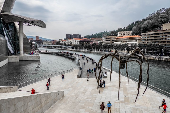 Los escépticos se verían totalmente sorprendidos por la rápida transformación de su ciudad. A lo largo de cuatro años, toda la zona del río Nervión cambió por completo. Los muelles enmohecidos desaparecieron y fueron sustituidos por espacios verdes y paseos. En medio de todo esto, se construyó un gigantesco marco de acero curvo. No fue la primera vez que el arquitecto norteamericano canadiense-norteamericano Frank Gehry provocó un fuero con su estilo poco convencional. Su enfoque desconstructivista hacía que las esquinas y las líneas rectas parecieran inexistentes, sustituidas por olas, arcos y curvas. Todo parecía un poco caótico y se convirtió en una expresión perfecta de la arquitectura.