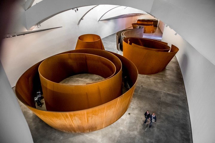 Obras como esta de Richard Serra «La Materia del Tiempo», son expuestas como otras 170 más que hasta ahora han presentado las grandes estrellas del arte de las últimas cuatro décadas, entre las cuales había Yves Klein, Robert Rauschenberg, Andy Warhol, Gerhard Richter y Jeff Koons, por citar algunas. Y para contrarrestar los miedos iniciales, una sección del museo está dedicada a artistas españoles y vascos.