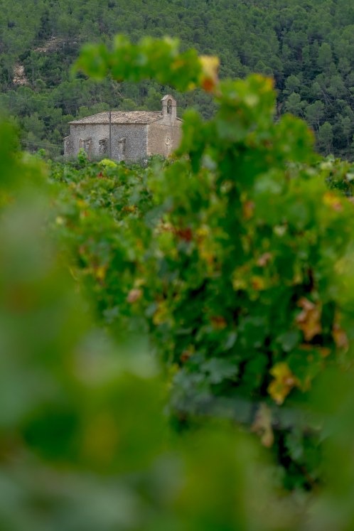 Pontons es el pueblo situado en la parte más alta de esta comarca vitivinicultora, es donde están fotografiadas las uvas de xarel·lo.
