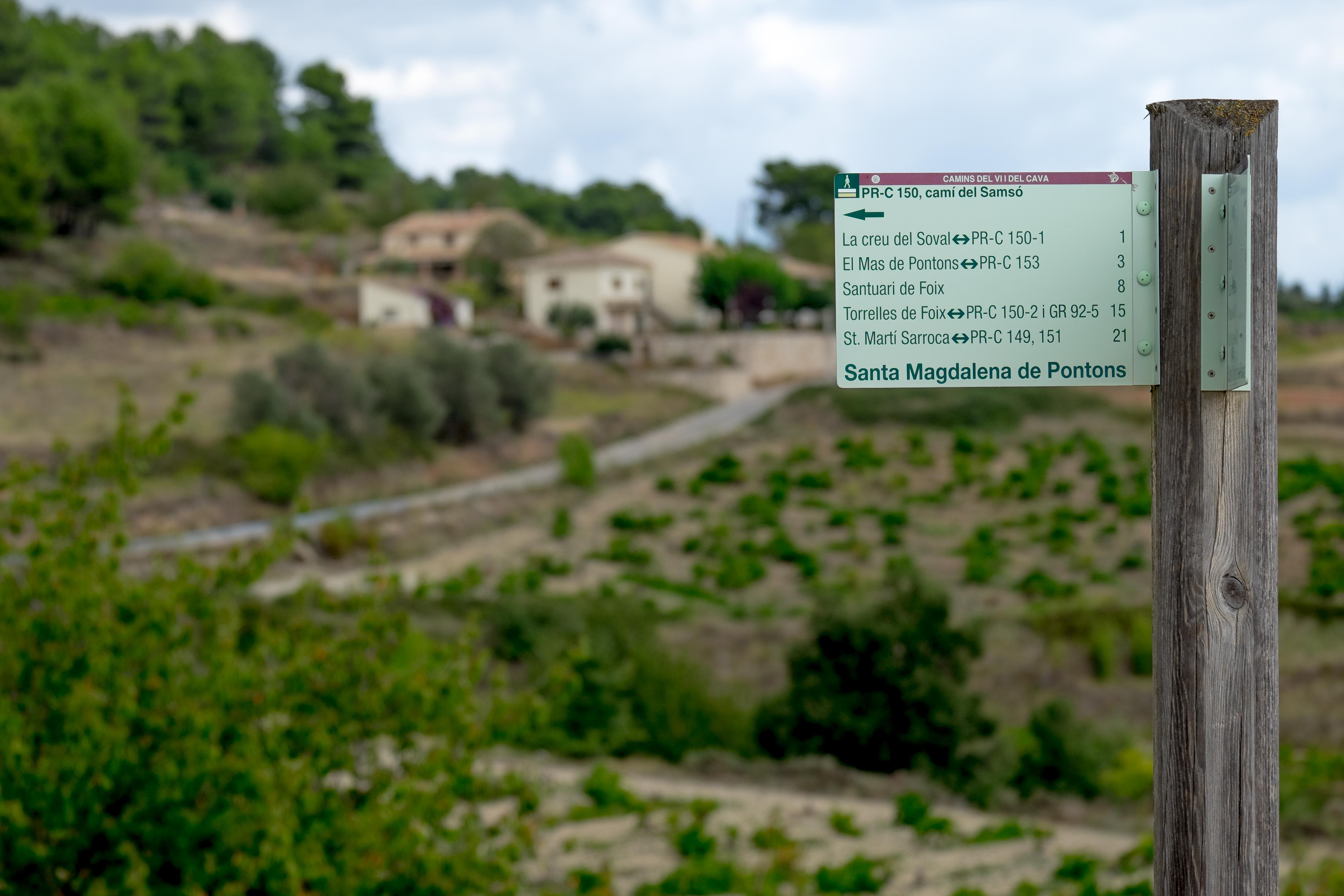 Pontons es el pueblo situado en la parte más alta de esta comarca vitivinicultora, es donde están fotografiadas las uvas de xarel·lo.