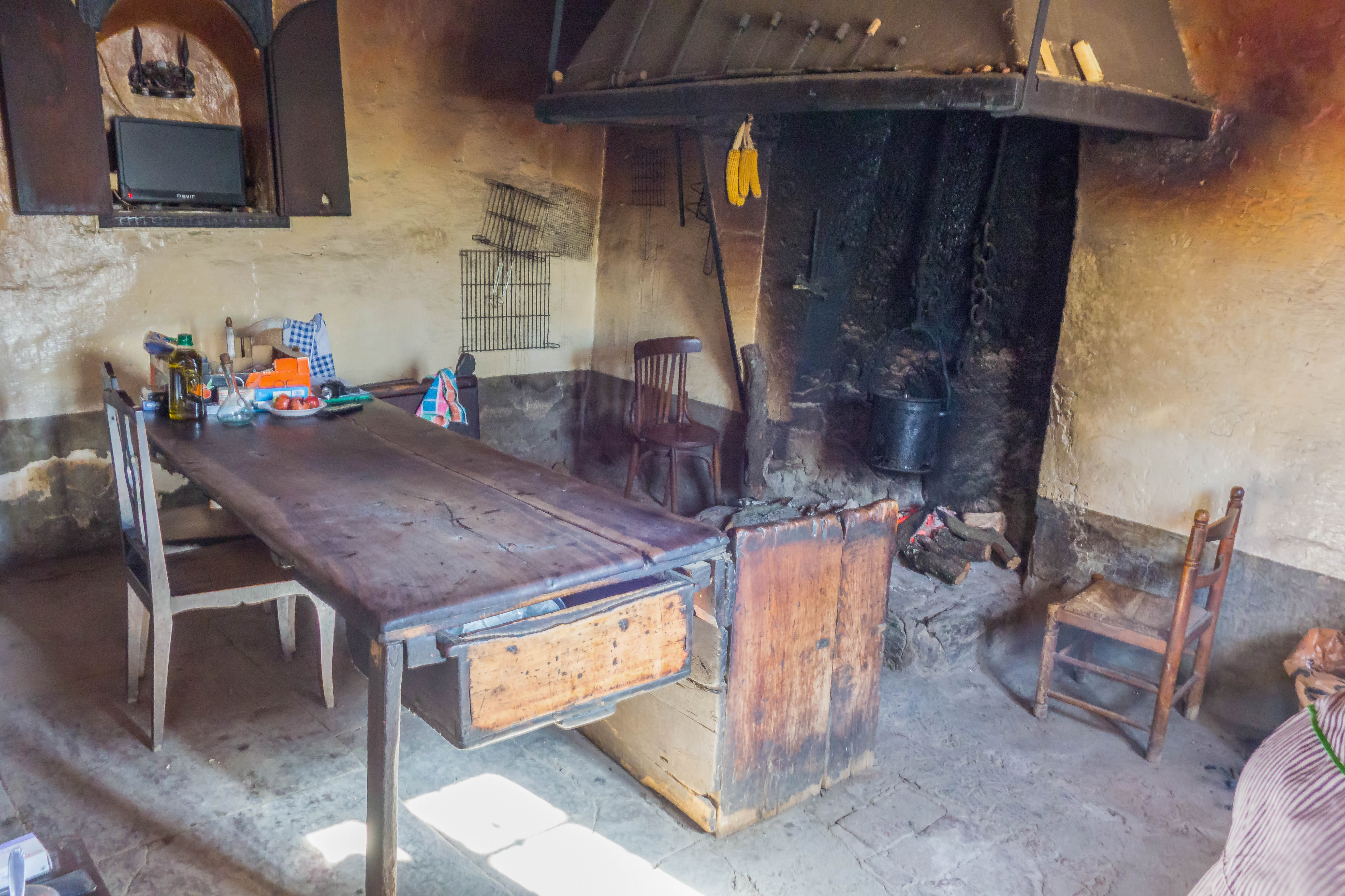 Esta es habitación donde pasan gran parte del día. Hace de comedor, cocina, sala de TV, con el típico banco adosado a la mesa, situado frente a la chimenea.