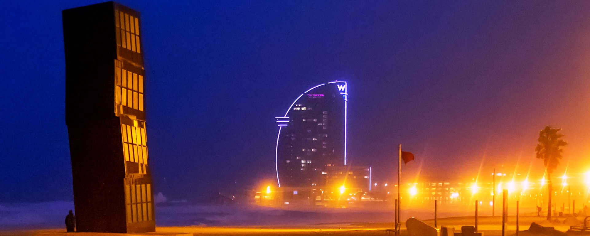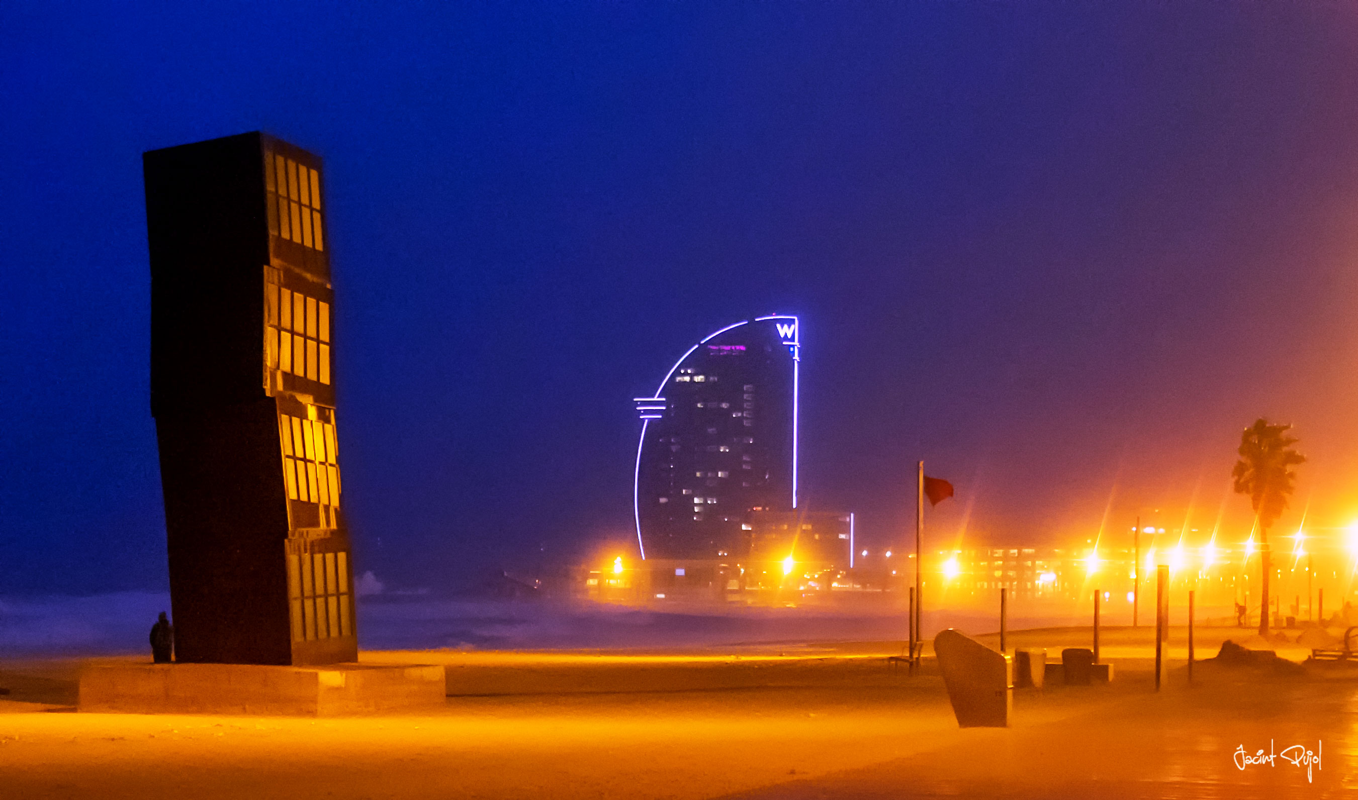 «La Estrella herida». Esta escultura de diez metros de altura e instalada a pie de playa, está formada por cuatro cubos de acero que representan cuatro habitáculos puestos uno encima del otro de forma desencajada. Es el homenaje de Rebecca Horn, artista nacida en Alemania en 1944, vivió desde su juventud en el barrio de pescadores de la Barceloneta, un distrito popular que ahora convive con una masiva afluencia turística a raíz de los Juegos Olímpicos.