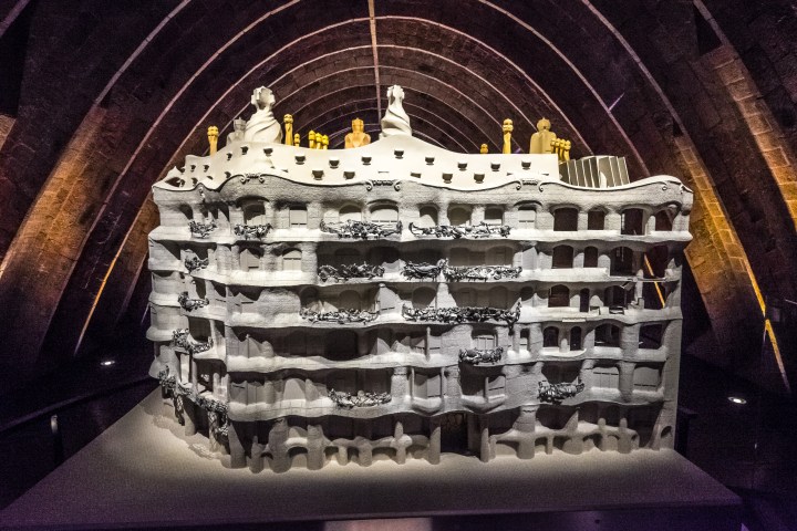Actualmente está ocupado por el Espacio Gaudí, que no es más que una exposición sobre diferentes obras de Antoni Gaudí, con diversos paneles explicativos y algunas maquetas. Sin embargo, lo que nos llama la atención es el diseño mismo del desván. A mí me recordó el interior de una ballena.