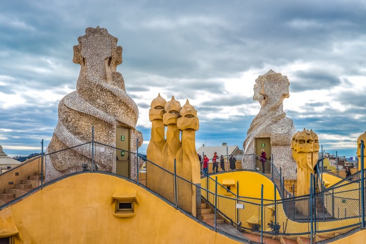 No hay duda de que lo más característico de la azotea de la Pedrera es el conjunto de chimeneas, torres de ventilación y salidas de escalera a cual más original y que suponen una de las señas de identidad de la obra gaudiniana. La mayoría de estos elementos tienen formas contorsionadas y algunas, como las salidas de escalera, decoradas con el uso del famoso trencadís gaudiniano.