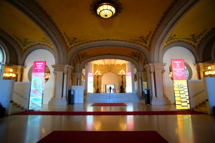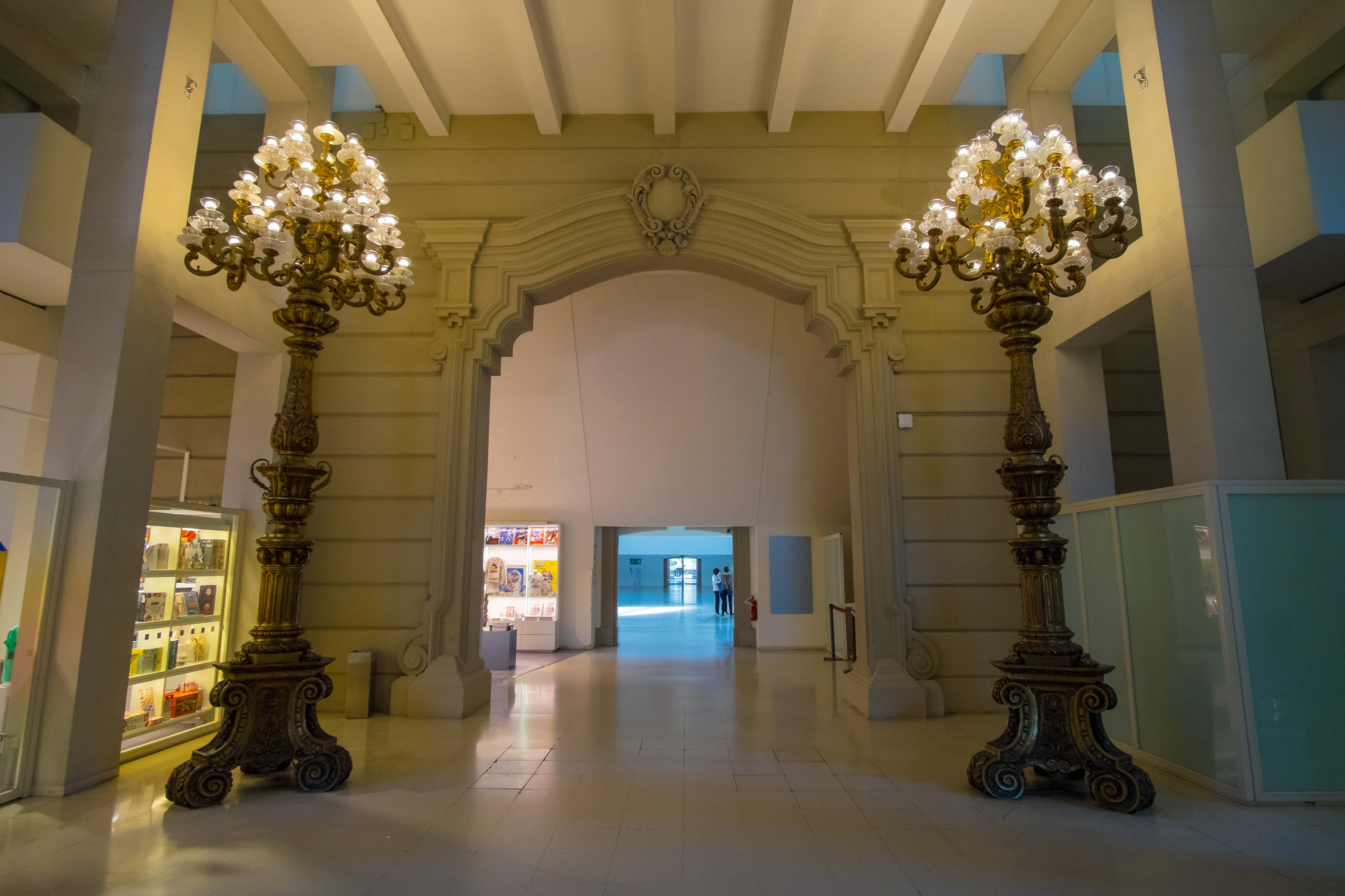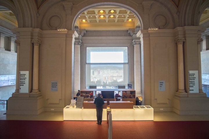 Mostrador de acceso al Museo Nacional de Arte de Cataluña (MNAC), situado en el vestíbulo de entrada.