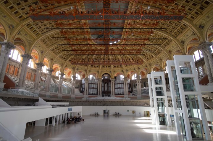 Para cubrir la Sala Oval, unos 3.500 metros cuadrados, se utilizó una estructura de hierro apoyada sobre parejas de pies derechos, también metálicos. Foto: Arxiu Institut Municipal d’Història.