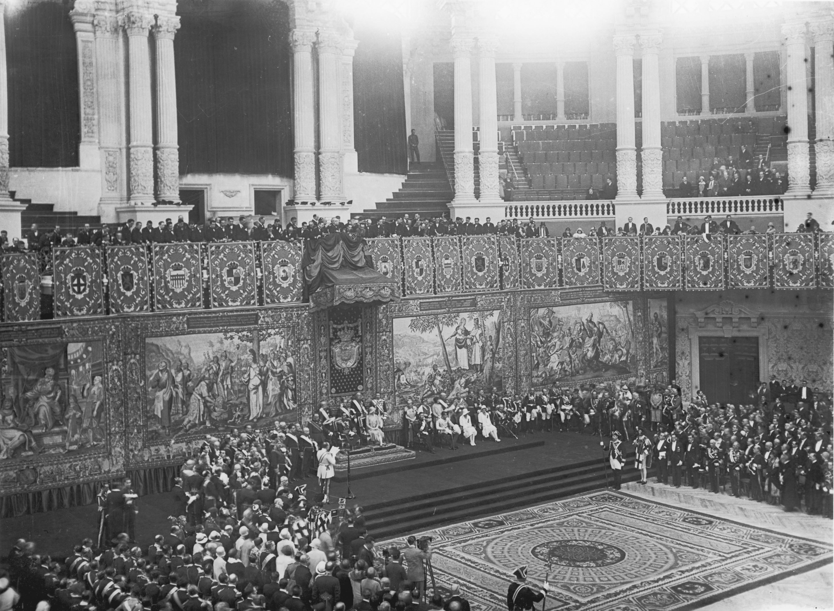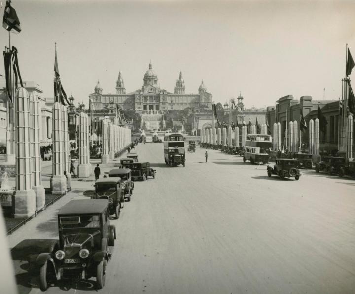 El 19 de mayo de 1929, se inauguró la Exposición Internacional de Barcelona. La ceremonia principal tuvo lugar en la Sala Oval del Palau Nacional, en presencia de los Reyes de España y de numerosas autoridades. El director del certamen, el alcalde de la ciudad y el jefe de Gobierno pronunciaron los discursos inaugurales. Después de los discursos, los reyes salieron al balcón del Salón del Trono y declararon inaugurada la exposición. Se dispararon unas salvas, se soltaron 60.000 palomas y se pusieron en marcha las cascadas y las fuentes de Montjuïc.