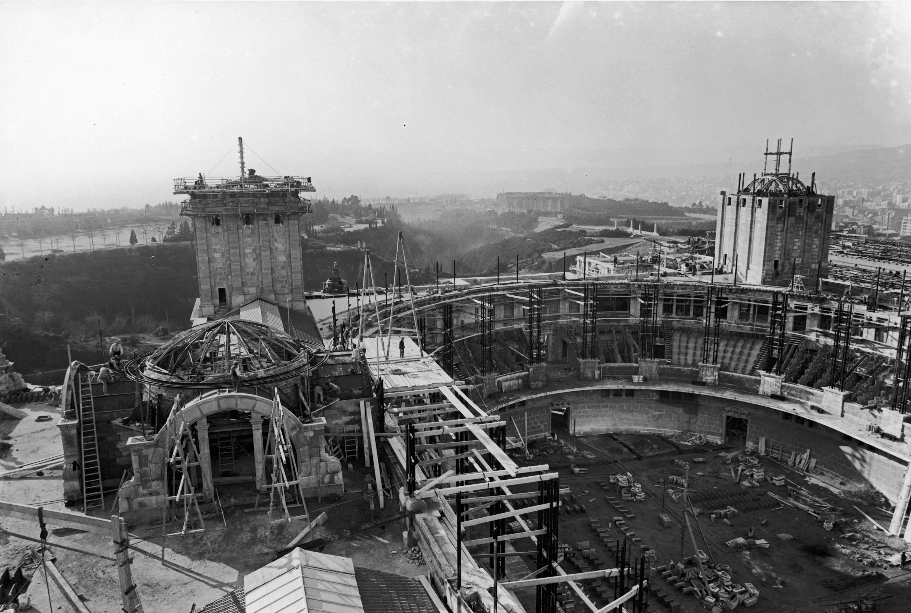 Estado de la construcción del Palau Nacional en enero de 1928. Foto: Arxiu Històric de la Ciutat