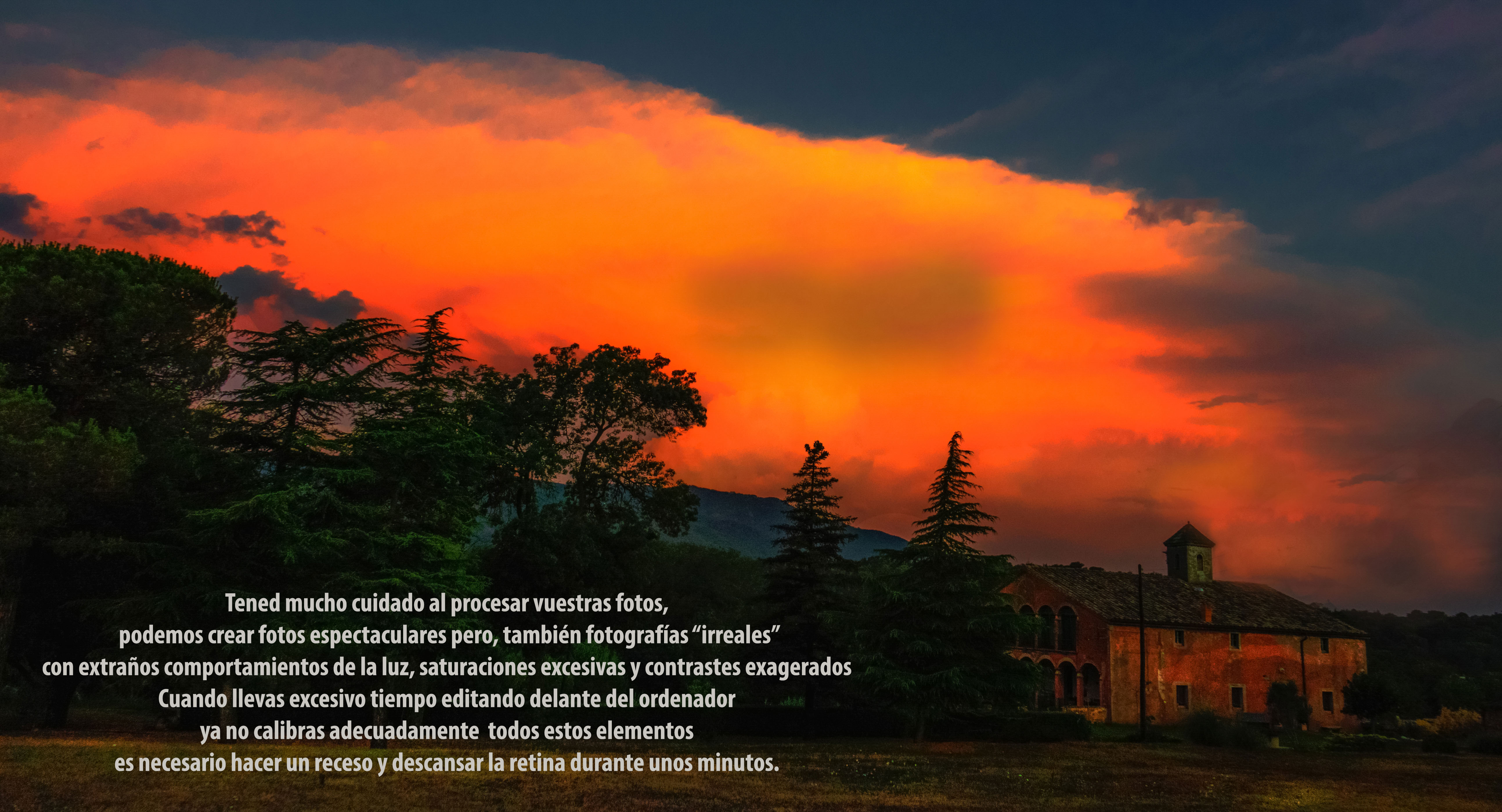 Be very careful when processing your photos, we can create spectacular photos but, also «unreal» photos, with strange light behaviors, excessive saturations and exaggerated contrasts. When you have been editing in front of the computer for an excessive time, you no longer properly calibrate all these elements, it is necessary to make a break and rest the retina for a few minutes.