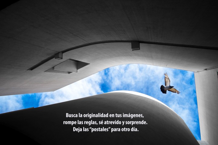 Look for originality in your images, break the rules, be bold and surprise. Leave the «postcards» for another day.