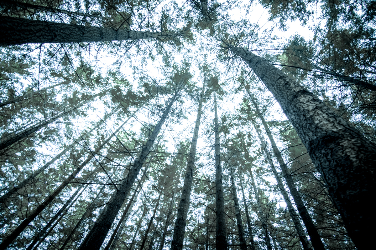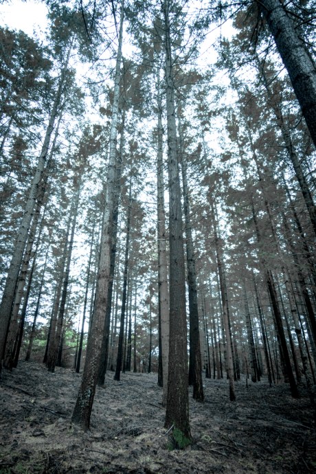 Hay un silencio de catedral aquí. Tal vez la gruesa y blanda corteza absorba el ruido y cree el silencio. Los árboles se elevan rectos hacia el cénit. No hay horizonte.