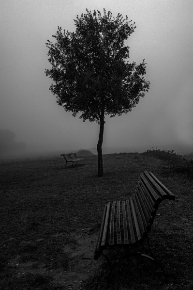 Es mi hora mágica, la que difumina la oscuridad y envuelve con su tenebrosidad los perfiles más ocultos. La lluvia, la niebla y el frío, han aparecido justo antes de oscurecer y me han invitado a no dejar pasar el momento de inmortalizarlos en mi «captadora de sensaciones», mi cámara. Solitud, soledad, misterio, incluso miedo fueron mis compañeros.