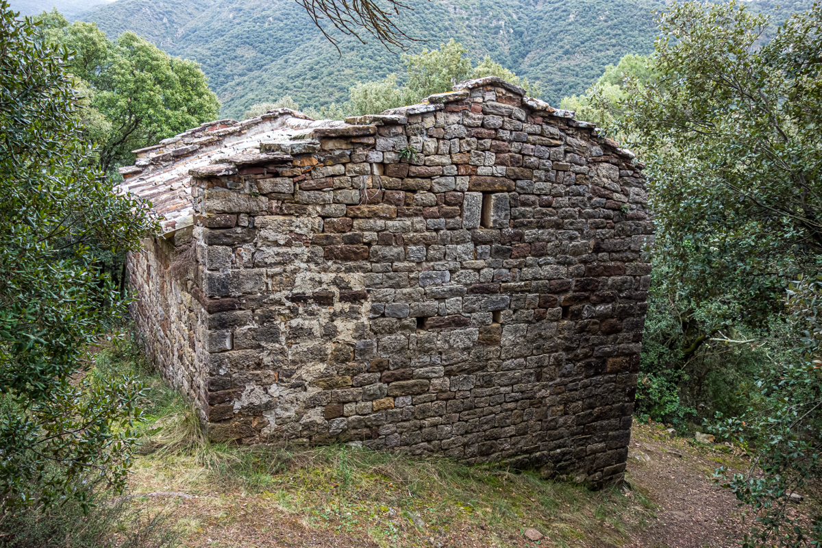 Había pasado multitud de veces en bicicleta cerca de allí, pero nunca llegué a encontrarla. Por fin pude localizarla siguiendo un espinoso y desdibujado sendero y allí estaba Sant Miquel de Canyelles!!