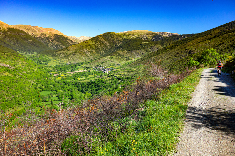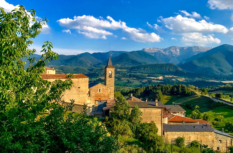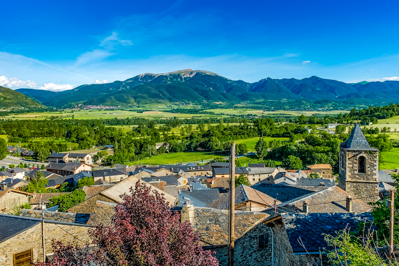 Al fondo ya se divisaba el pueblo de Prullans, rodeado de prados y montañasPrullansTalltendre, un diminuto pueblo situado a 1.500 m. de altitud. Al fondo la Sierra del Cadí.