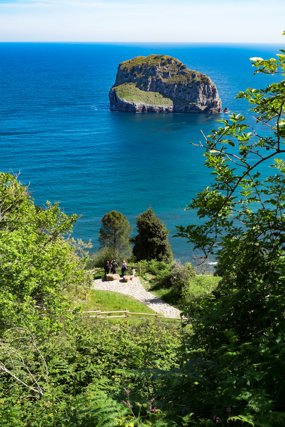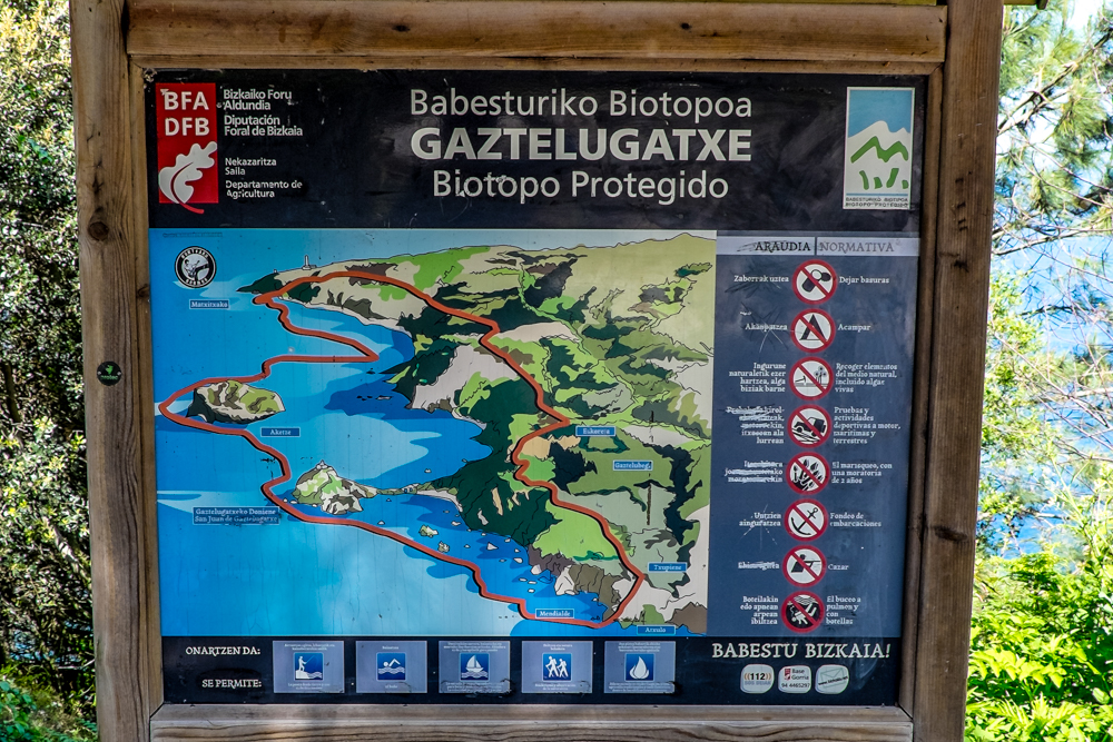 La perspectiva cada vez se nos ofrece más espectacular y espléndida.A partir de cierta altura se puede divisar al fondo la localidad de Bakio.Todo el entorno de San Juan de Gaztelugatxe ha sido declarado esta primavera Bien Cultural Especial en la categoría de Paisaje Cultural. El objetivo de esta medida es reconocer el valor patrimonial del enclave y, asimismo, blindar sus valores esenciales ante eventuales alteraciones en la zona. El conjunto declarado Bien Cultural incluye la isla de Gaztelugatxe, el puente, el ensanche existente para acceder al mismo, y el entorno marítimo y terrestre que contextualiza el conjunto.