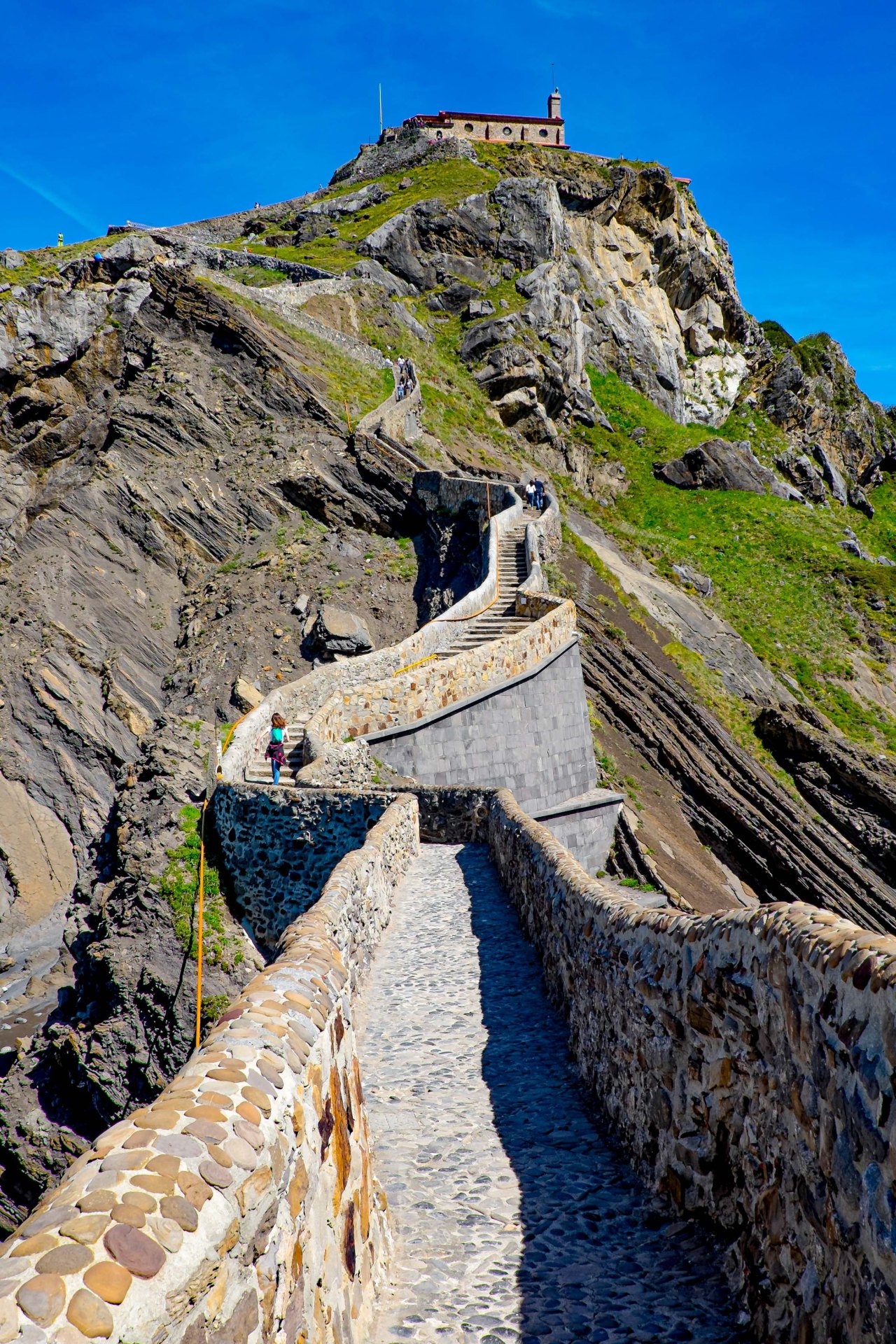 En 1596, San Juan de Gaztelugatxe fue atacado por Sir Francis Drake y sus corsarios. Saquearon todo lo que encontraron y mataron al ermitaño que cuidaba del lugar tirándolo desde la parte más alta de la isla. La iglesia fue deteriorándose con los años hasta ser finalmente demolida en 1886 y reconstruida completamente. Desgraciadamente todos los objetos y artefactos encontrados, como monedas y bolas de cañón, fueron lanzados al mar.Existen varios miradores desde donde podemos tener diferentes perspectivas del islote.Una vez a los pies de Gastelugatxe nos sorprende el bonito puente de piedra que hace de nexo entre el continente y la isla. Desde aquí admiramos las impresionantes escaleras que, zigzagueantes, nos conducen hasta la ermita. Al poco de comenzar nuestra ascensión, nos damos cuenta de que tendremos que ir poco a poco para superar los 241 peldaños…