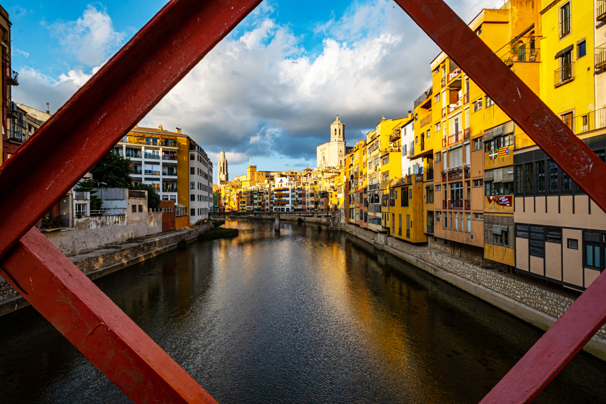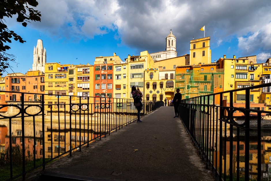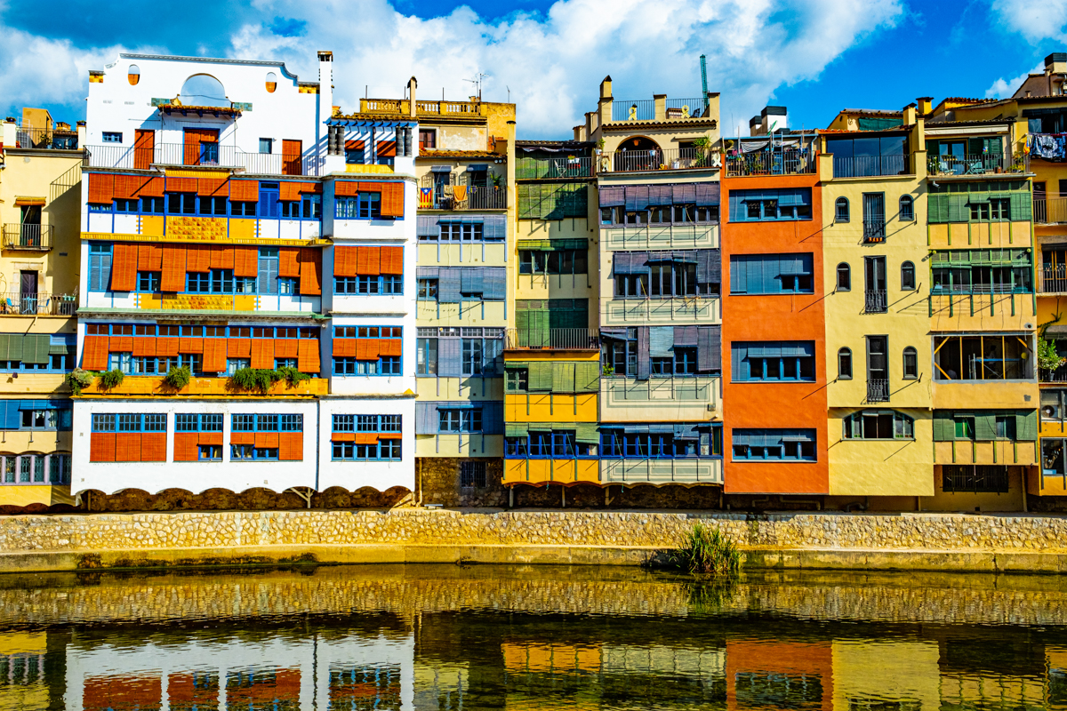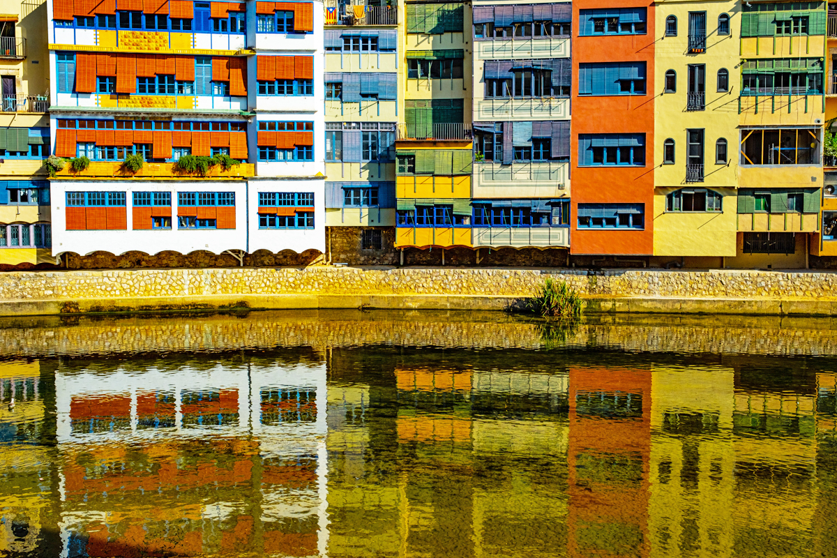Junto a la parte vieja de Girona, el rio Onyar queda encajonado entre las casas, una sucesión de edificios antiguos de colores, algunas descorchados y mal conservados, pero que pintan una de las imágenes más significativas de la ciudad. Tienen sus fachadas fluviales pintadas siguiendo una paleta cromática realizada por los arquitectos Fuses y Viader.
