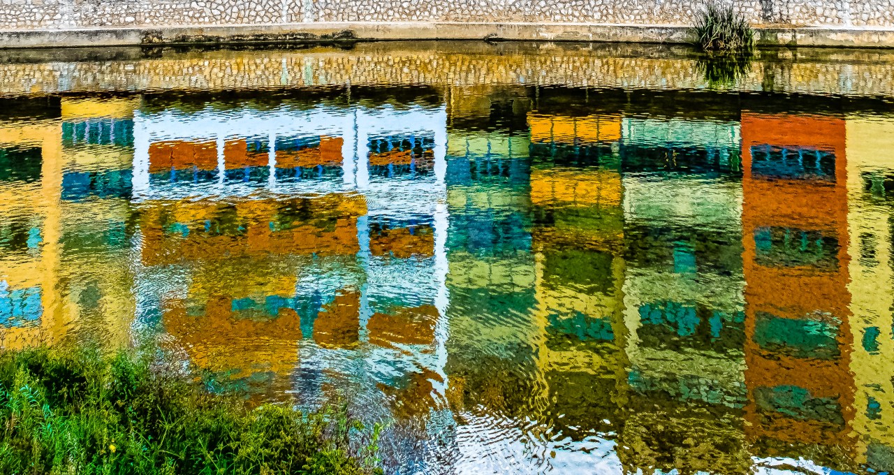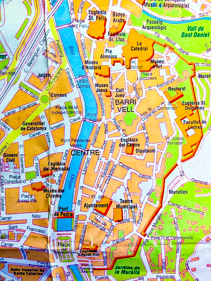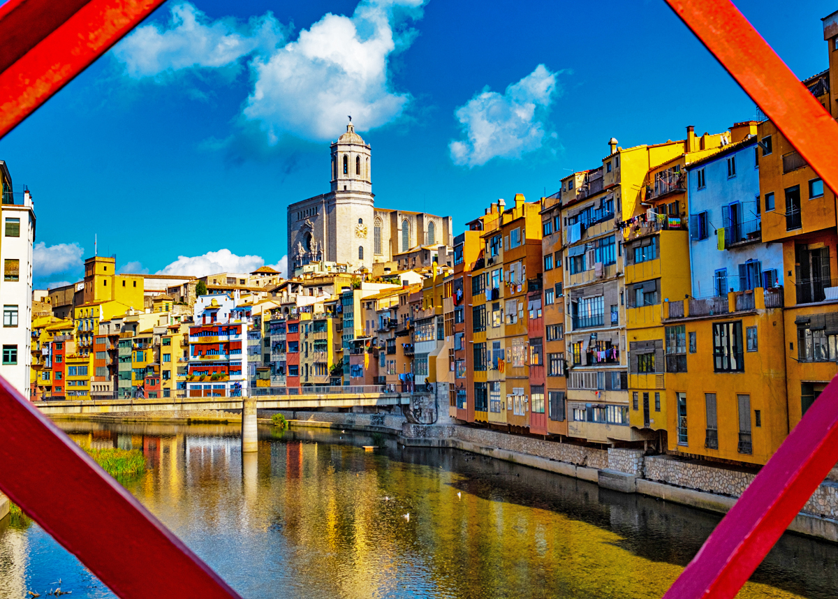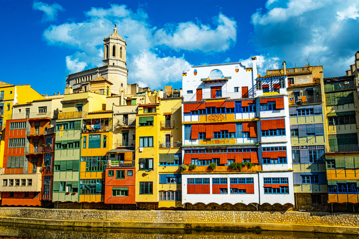 Junto a la parte vieja de Girona, el rio Onyar queda encajonado entre las casas, una sucesión de edificios antiguos de colores, algunas descorchados y mal conservados, pero que pintan una de las imágenes más significativas de la ciudad. Tienen sus fachadas fluviales pintadas siguiendo una paleta cromática realizada por los arquitectos Fuses y Viader.