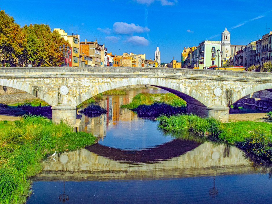 El Barrio Viejo y el Barrio del Mercadal de Girona están separados por el río Onyar. Este factor ha provocado que históricamente haya sido muy importante el papel de los puentes en la comunicación entre los dos principales ejes de la ciudad. Estas construcciones han acabado convirtiéndose en un importante referente arquitectónico para la población.
