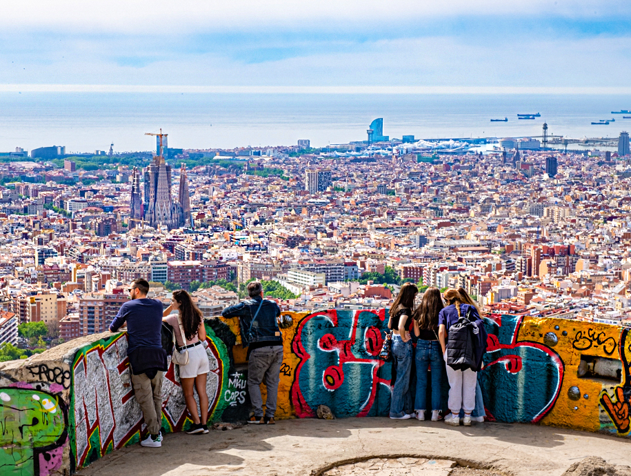Uno de los momentos idóneos para disfrutar del mirador es presenciar el atardecer sobre Barcelona mientras se tiñen de rojo los edificios y lugares más emblemáticos del skyline de la ciudad.